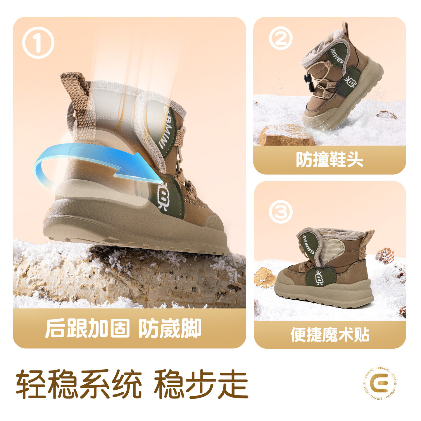 英贝米尼儿童雪地靴保暖二棉鞋男童冬季加绒宝宝学步鞋雪地棉女孩