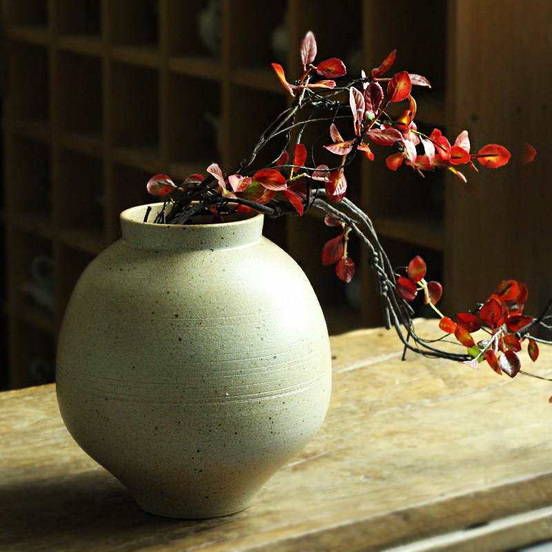 手工粗陶日式陶瓷花瓶插花花器皿禅意桌面摆件景德镇复古小花插