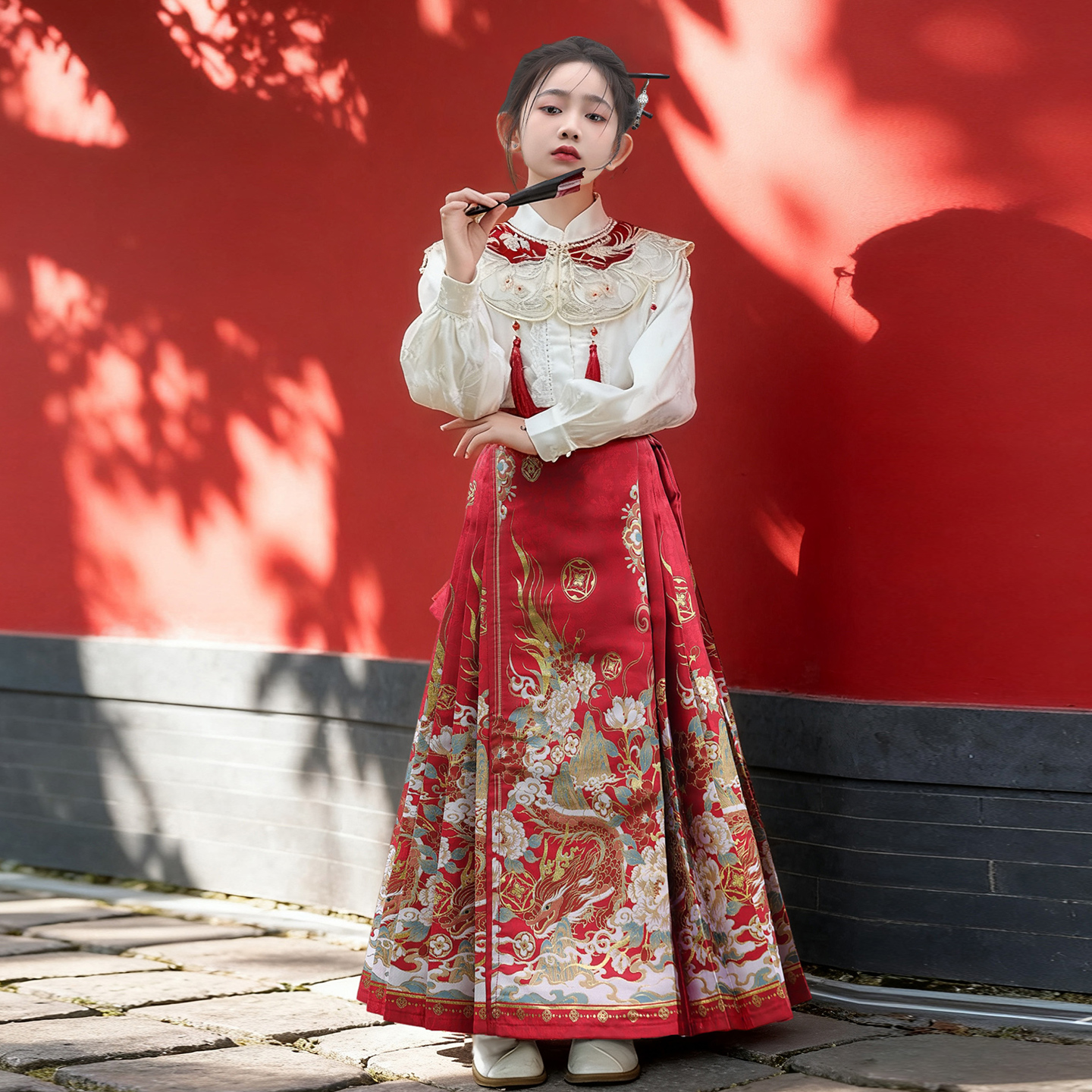 汉服女童马面裙冬装2025新款儿童拜年服新中式古风冬裙过年服国风
