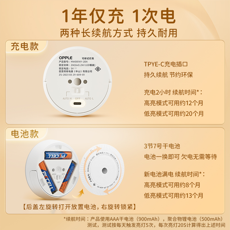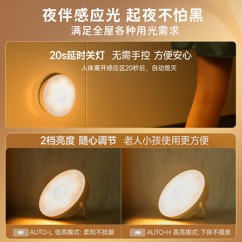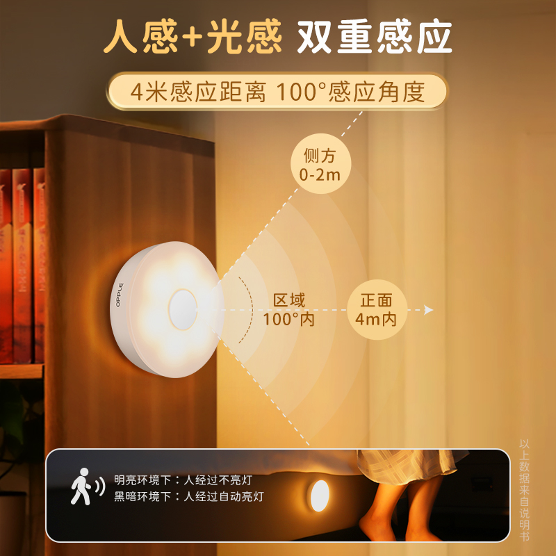 欧普人来即亮人体感应充电智能小夜灯楼道走廊卫生间卧室睡眠家用
