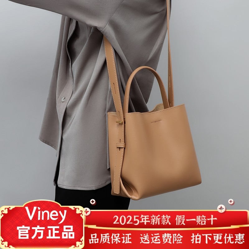 Viney包包女包牛皮斜挎水桶包手提单肩大容量生日礼物通勤送女友