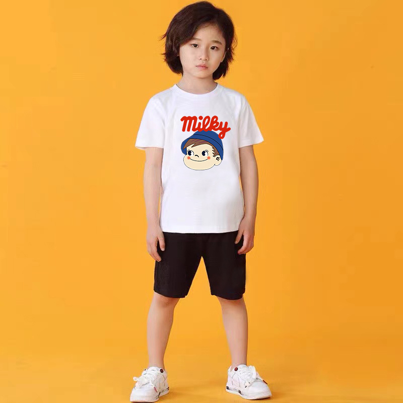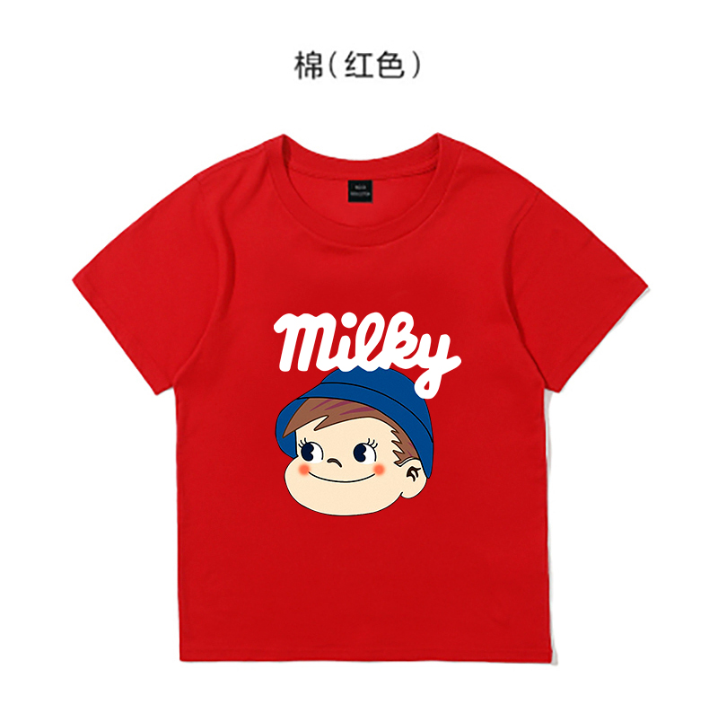 NASA联名不二家男童女童短袖2025夏新款卡通牛奶妹圆领纯棉亲子装