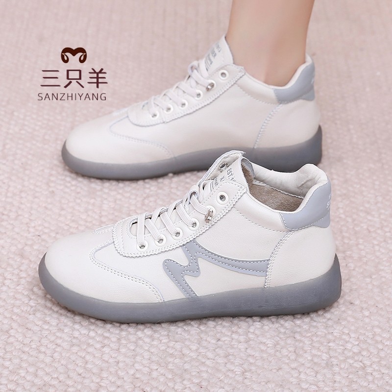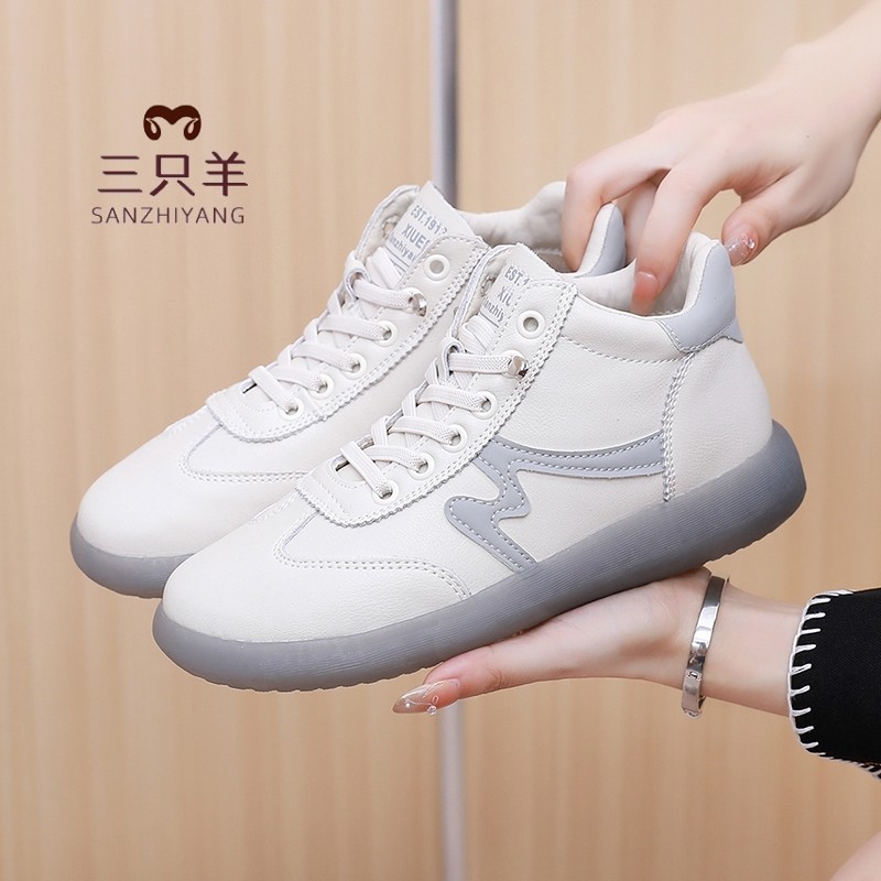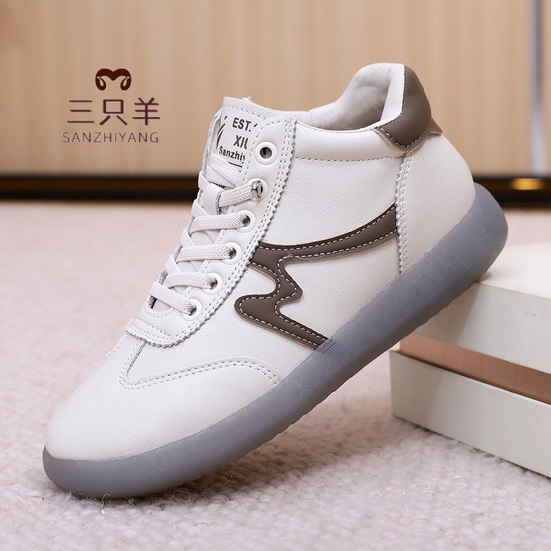三只羊2025休闲短靴真皮小白鞋新款高帮妈妈鞋一脚蹬秋冬加棉健步