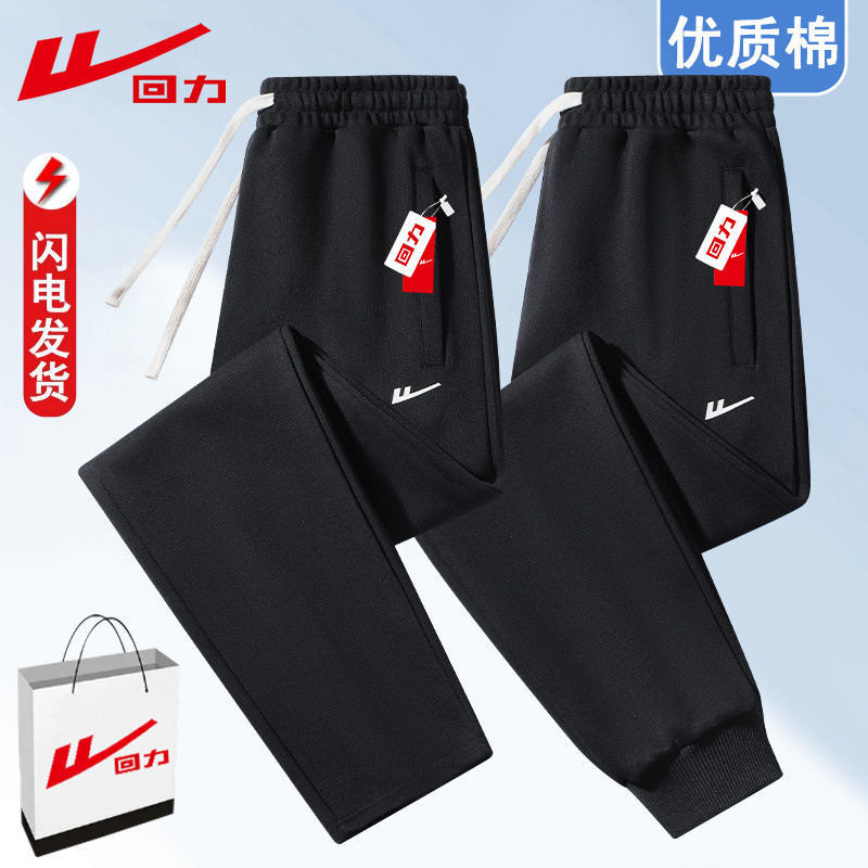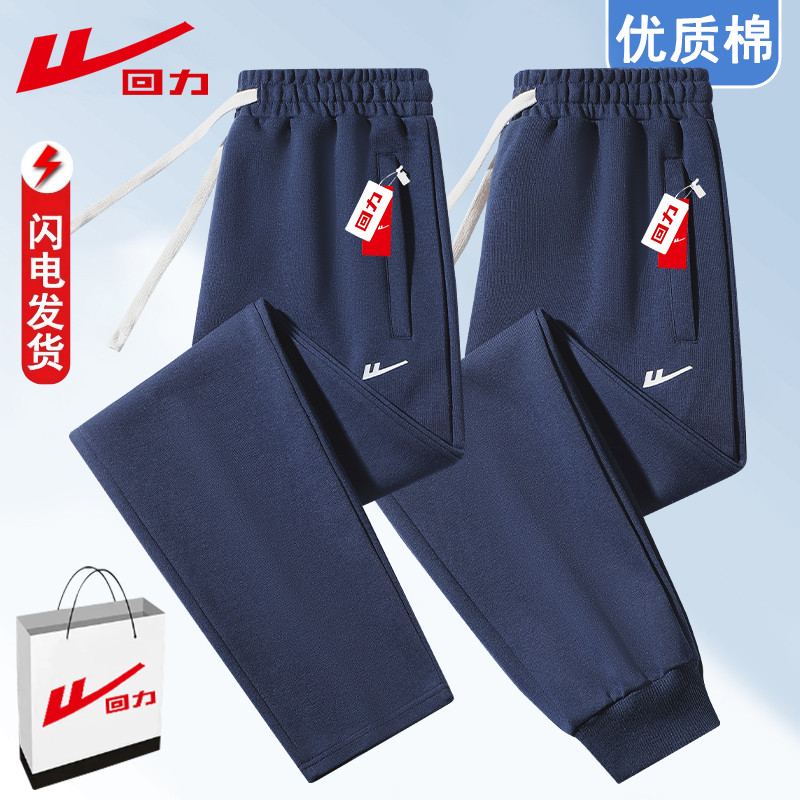 回力春秋季女男士舒适百搭休闲裤纯色棉质长裤显瘦显高松紧腰卫裤