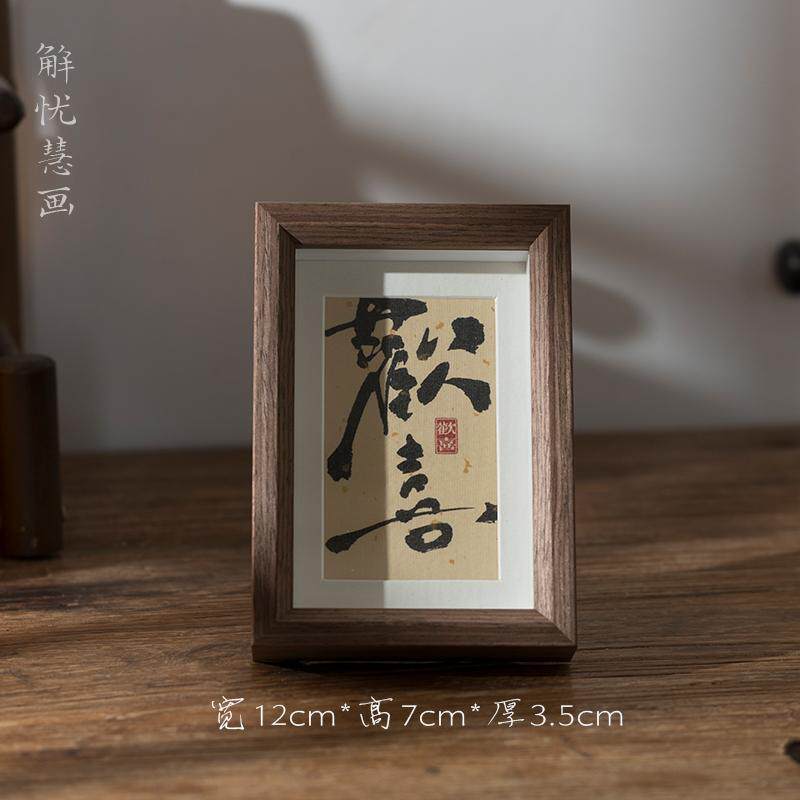 小号迷你洒金宣纸书法摆台摆件相框文创礼品国风桌面装饰画玻璃