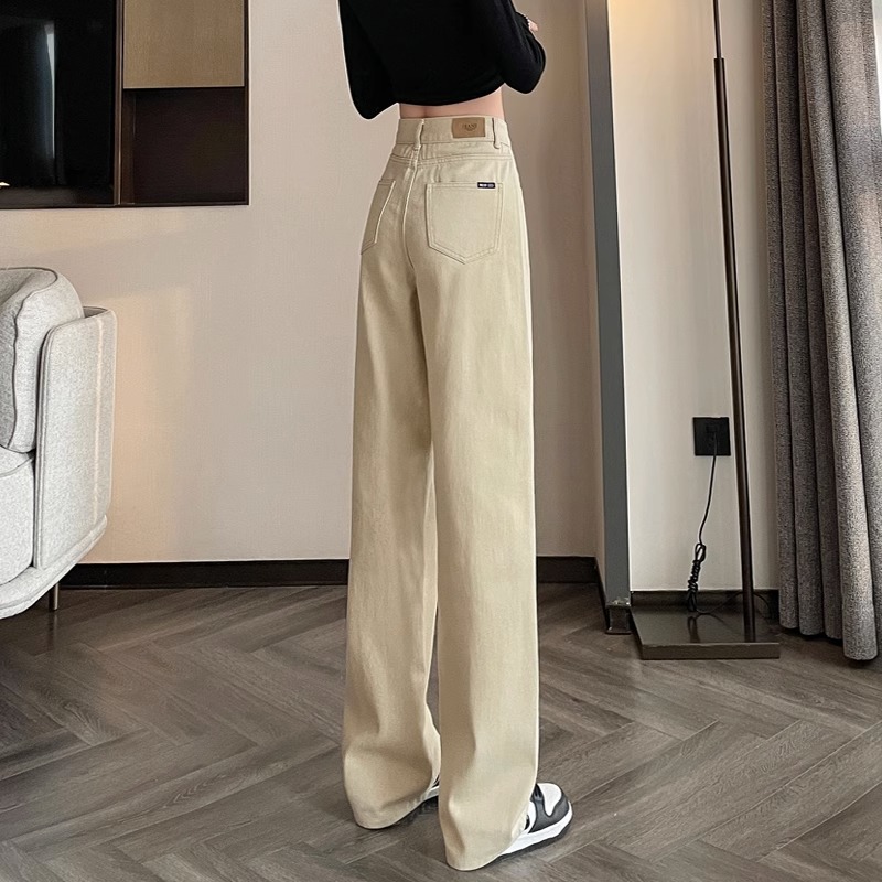 卡其色直筒裤女秋窄版阔腿牛仔裤