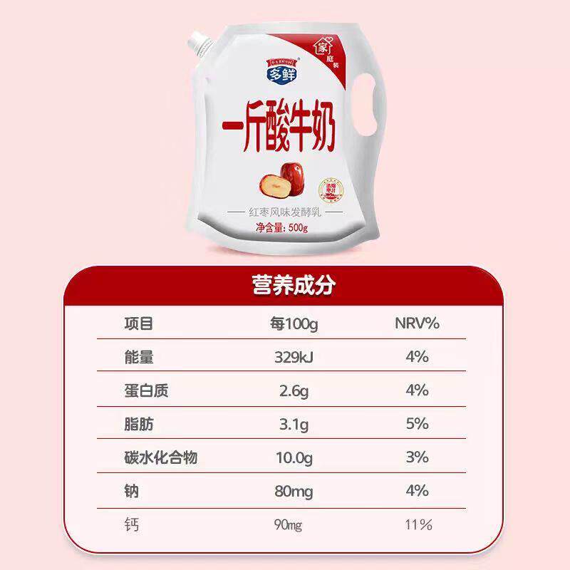 东方多鲜酸奶一斤装原味红枣酸牛奶袋装风味发酵乳