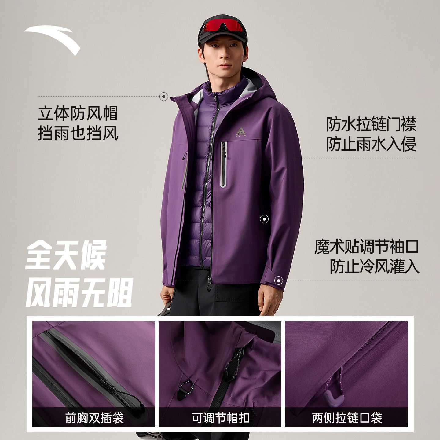 安踏水壳三合一冲锋衣 | 大地之壳3.0户外男士羽绒内胆防水外套