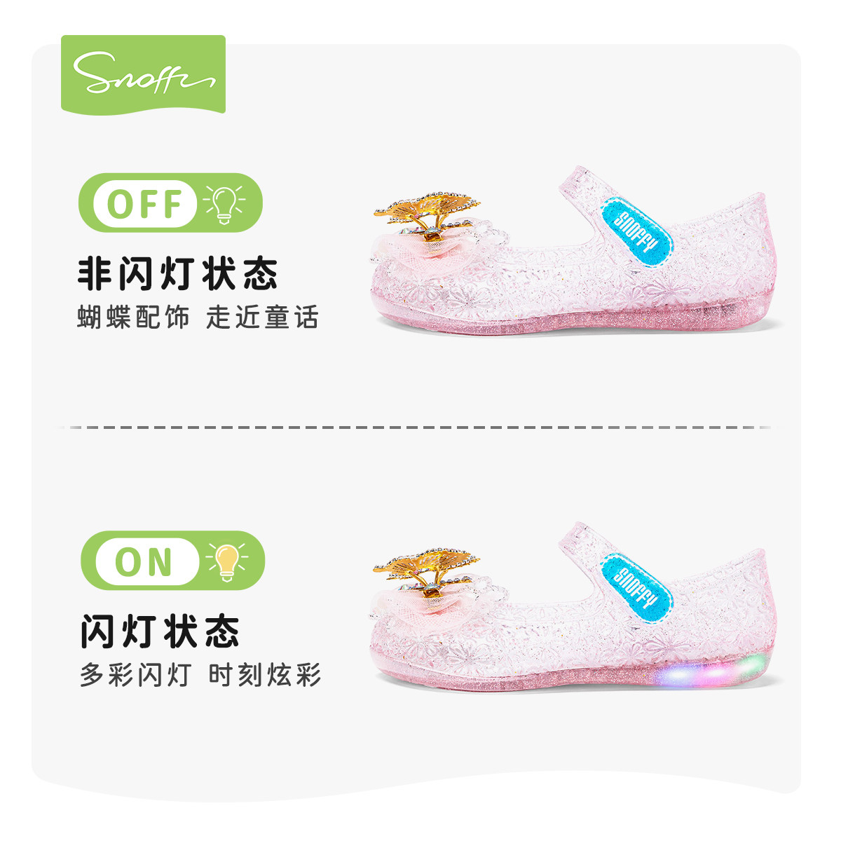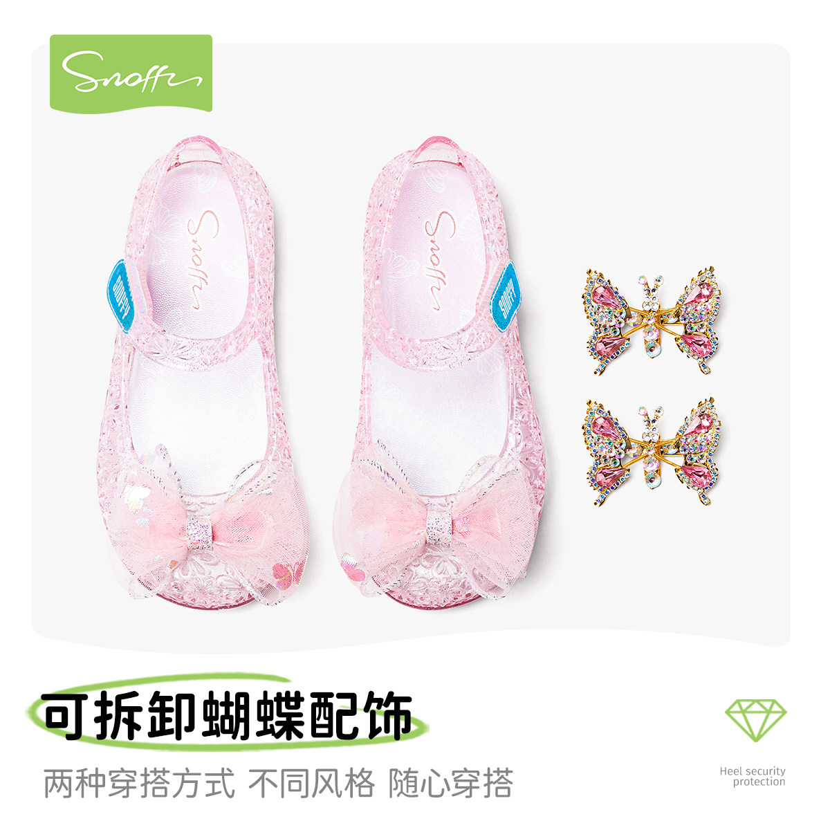 斯纳菲女童水晶果冻鞋软底防滑