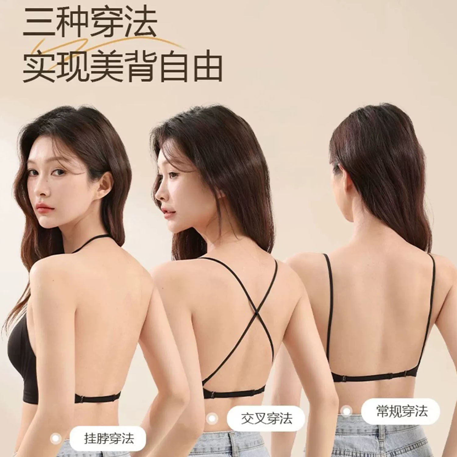 大露背多穿式挂脖吊带美背内衣女小胸聚拢显大无痕交叉u型文胸罩