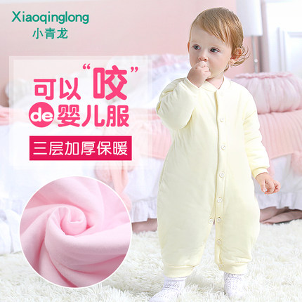 小青龙新生儿衣服0-3月纯棉加厚婴儿保暖衣套装宝宝内衣秋冬套装