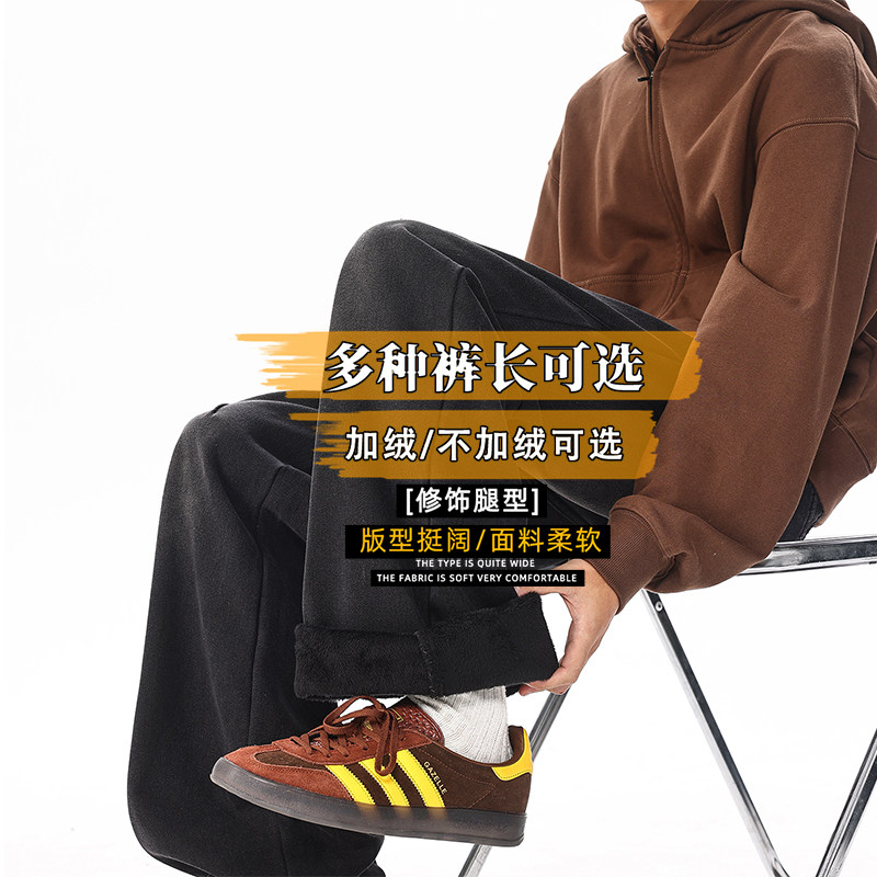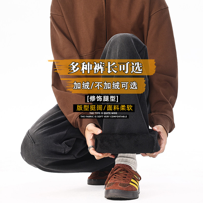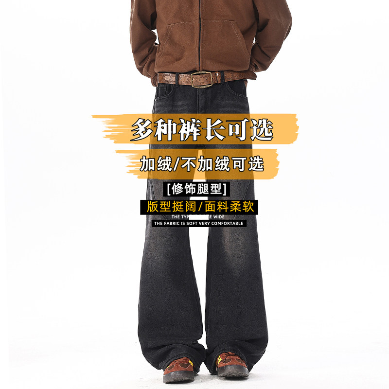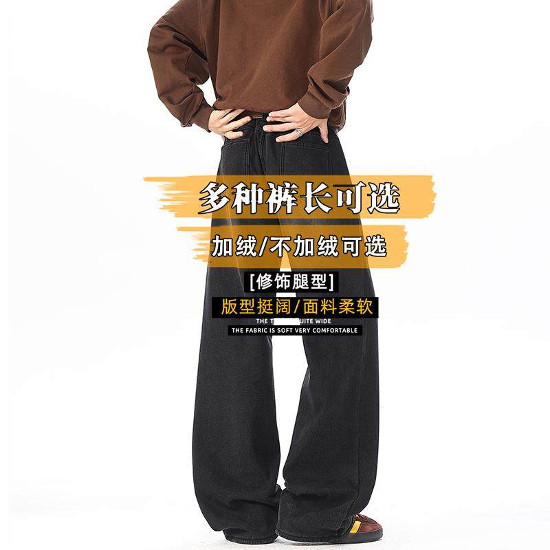 加长牛仔裤子男生做旧阔腿裤美式男孩青少年加绒加厚直筒显高显瘦