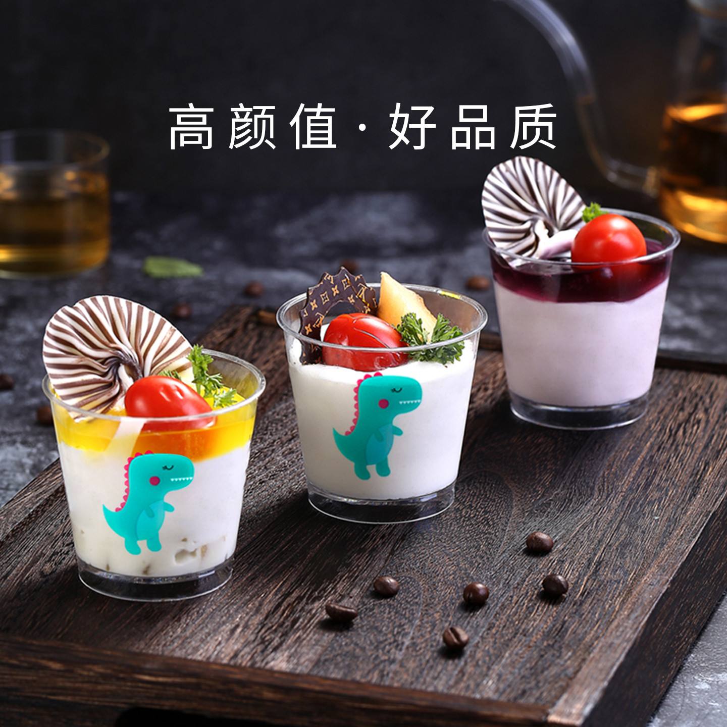 喇叭花一次性木糠杯蛋糕慕斯杯子酸奶布丁木糠双皮奶透明杯带盖