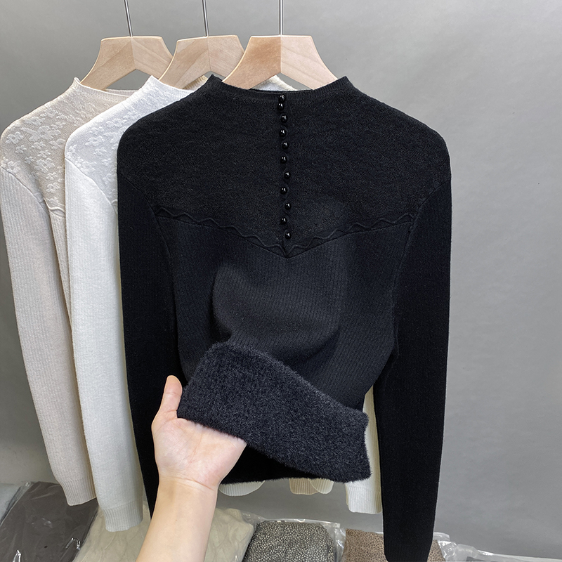 加绒半高领毛衣一体绒加厚打底衫