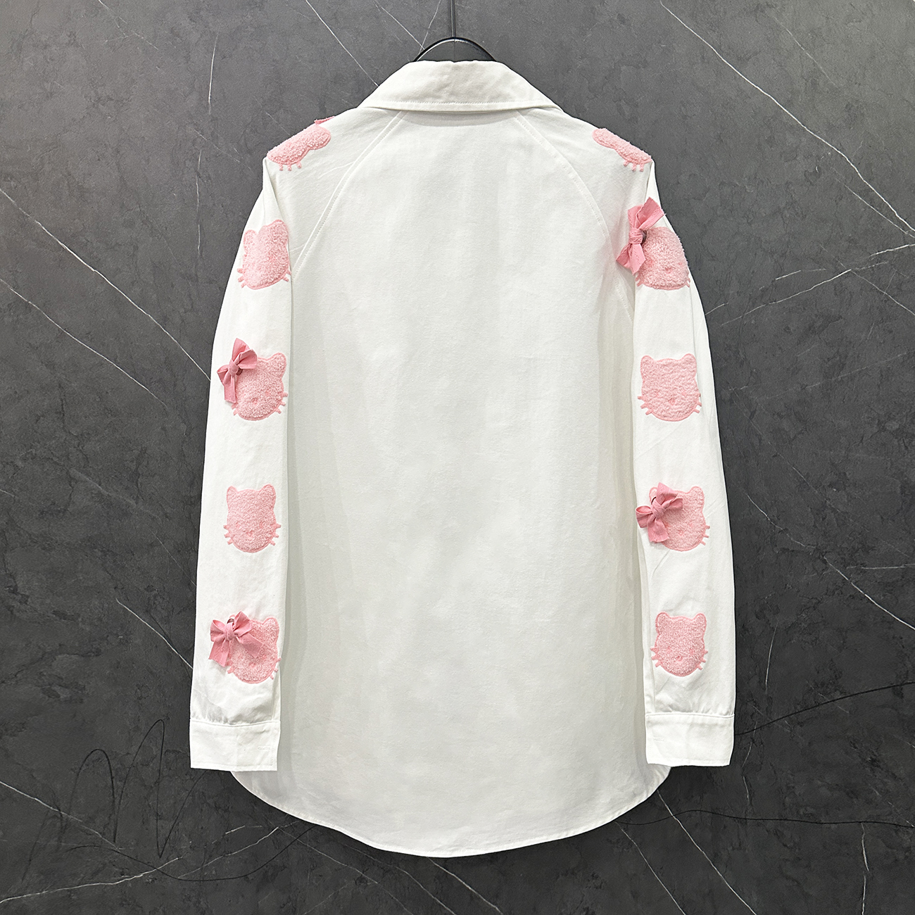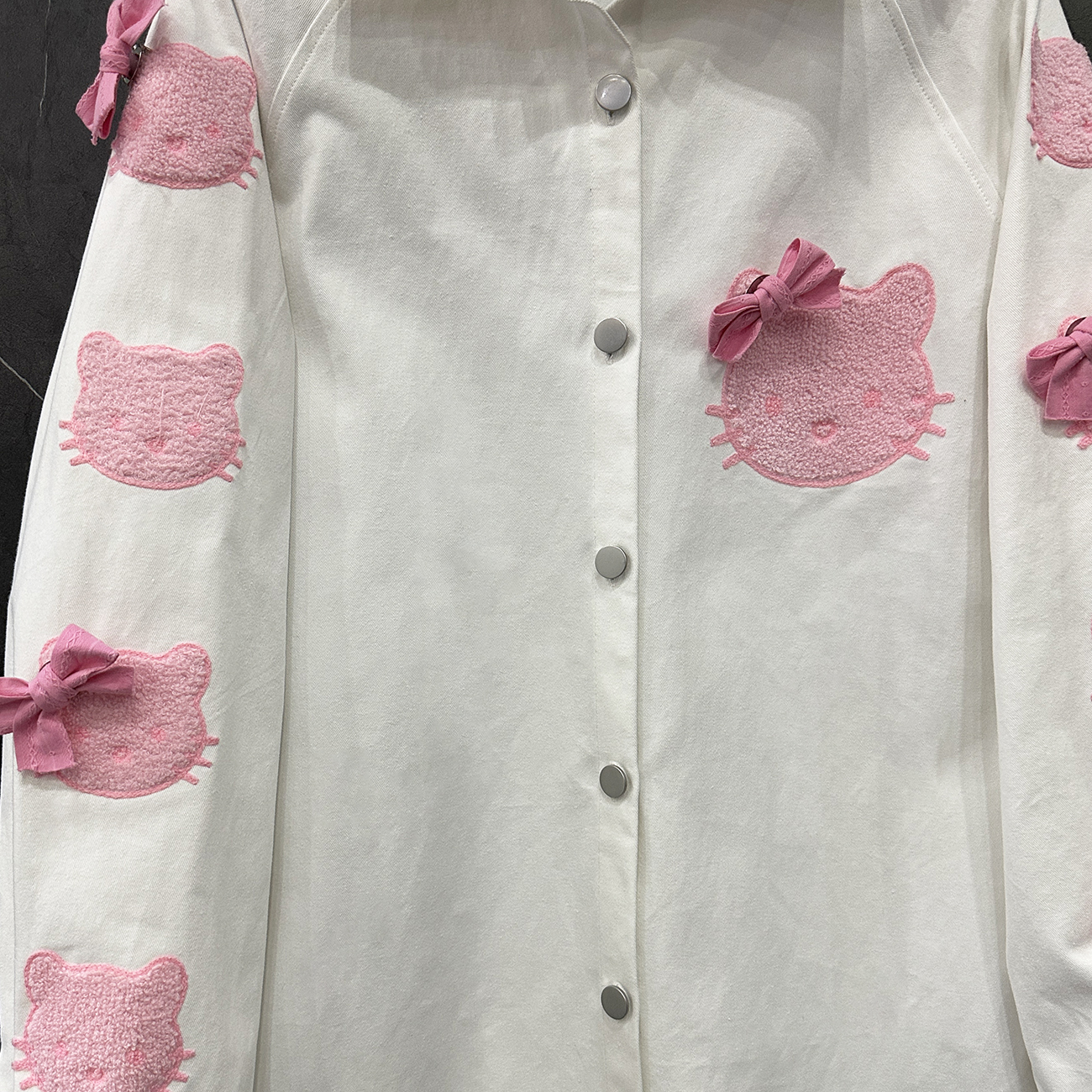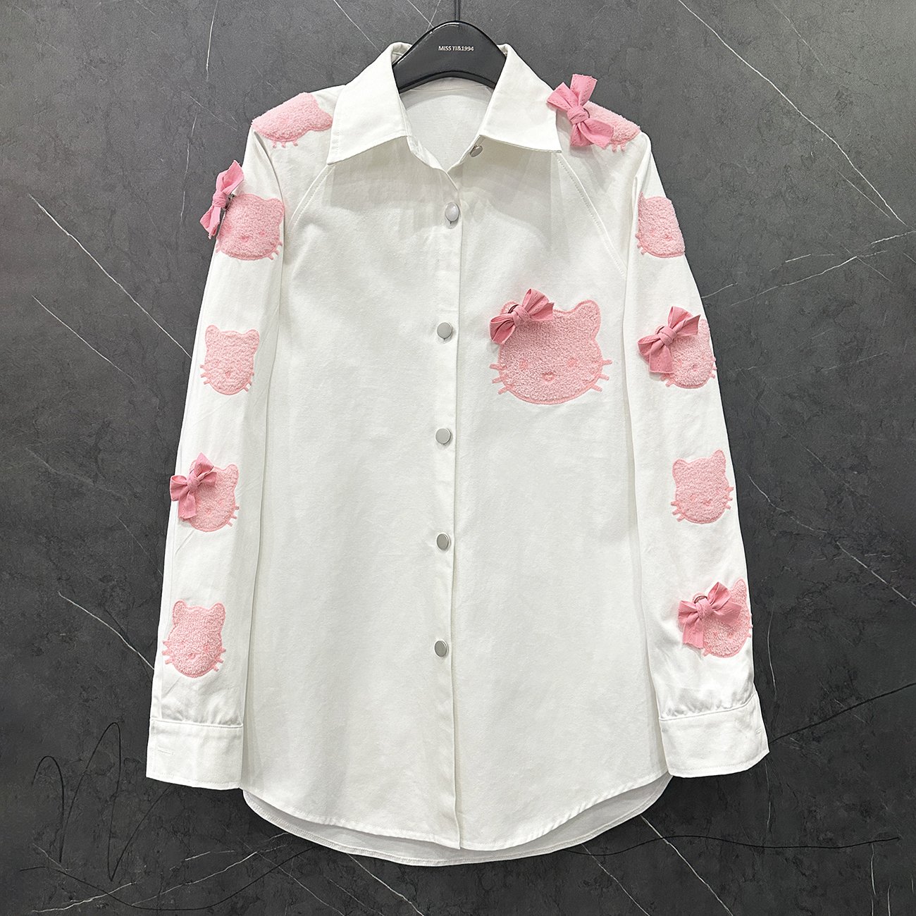 2025春秋新款卡通HelloKitty猫长袖牛仔衬衫女宽松甜美中长款衬衣