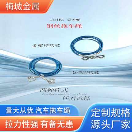 汽车拖车绳车载4米5吨钢丝拖车牵引钩安全自驾应急装备强力绳