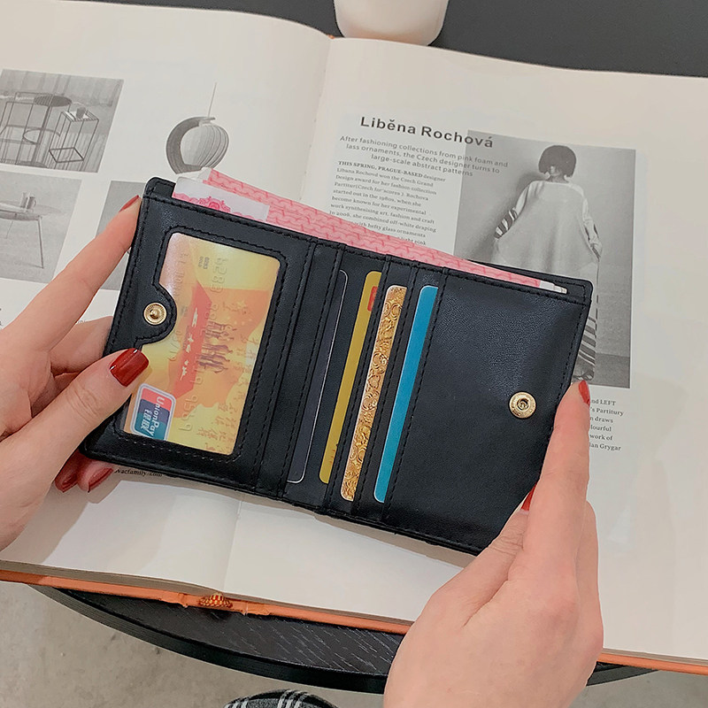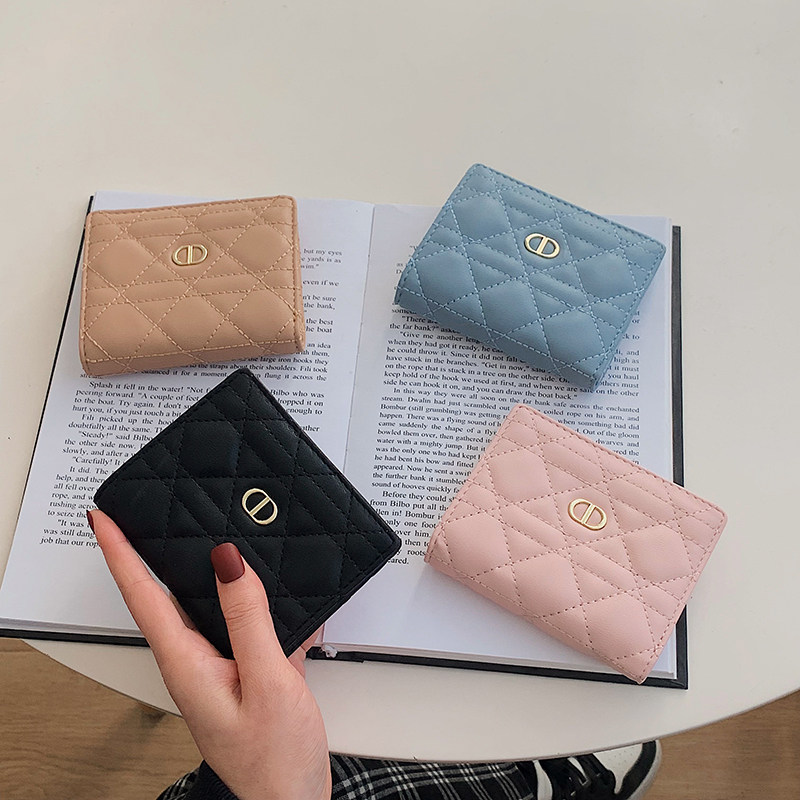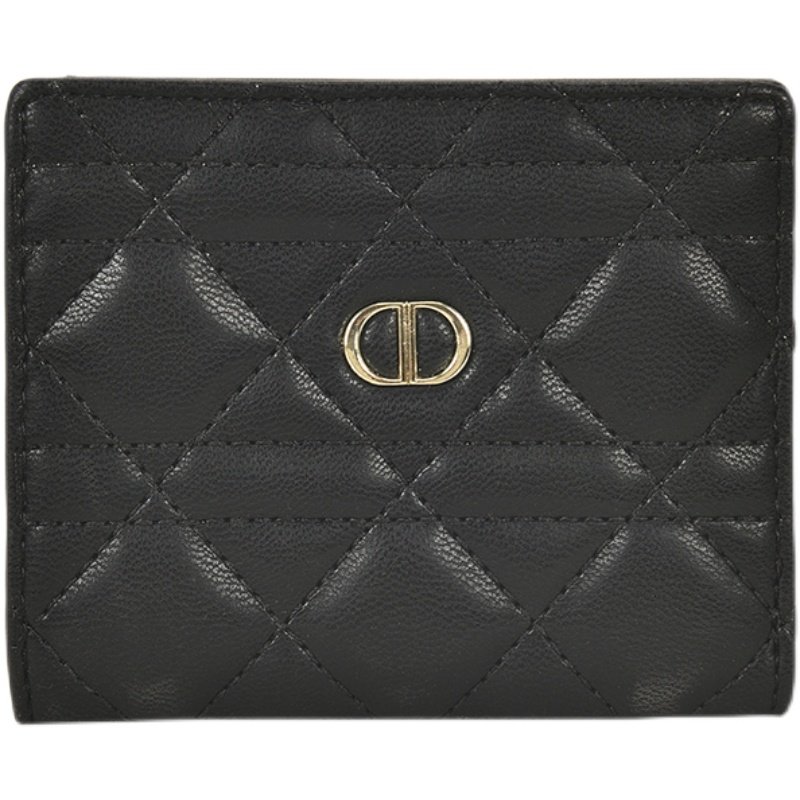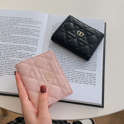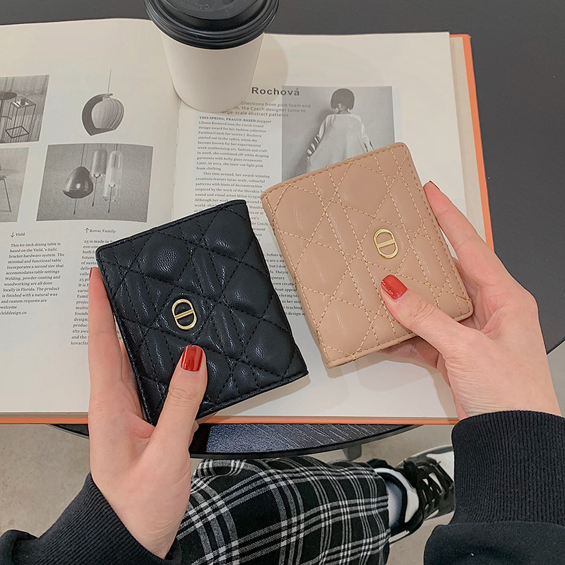 欧美小香风菱格钱包女短款2025新款个性青年纯色薄款折叠搭扣钱夹