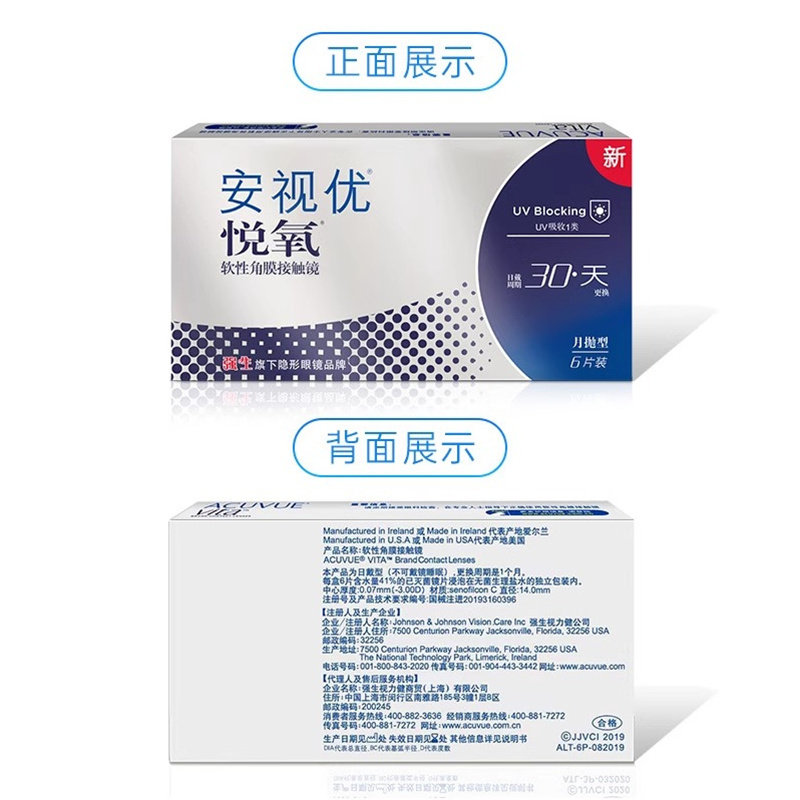 强生安视优悦氧月抛隐形眼镜硅水凝胶舒适防UV高透氧官方正品进口