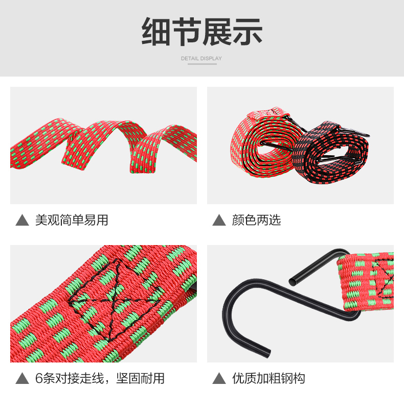 电动车后备箱固定绑带绳摩托车捆绑带钩绳子外卖箱高弹力橡皮扎带