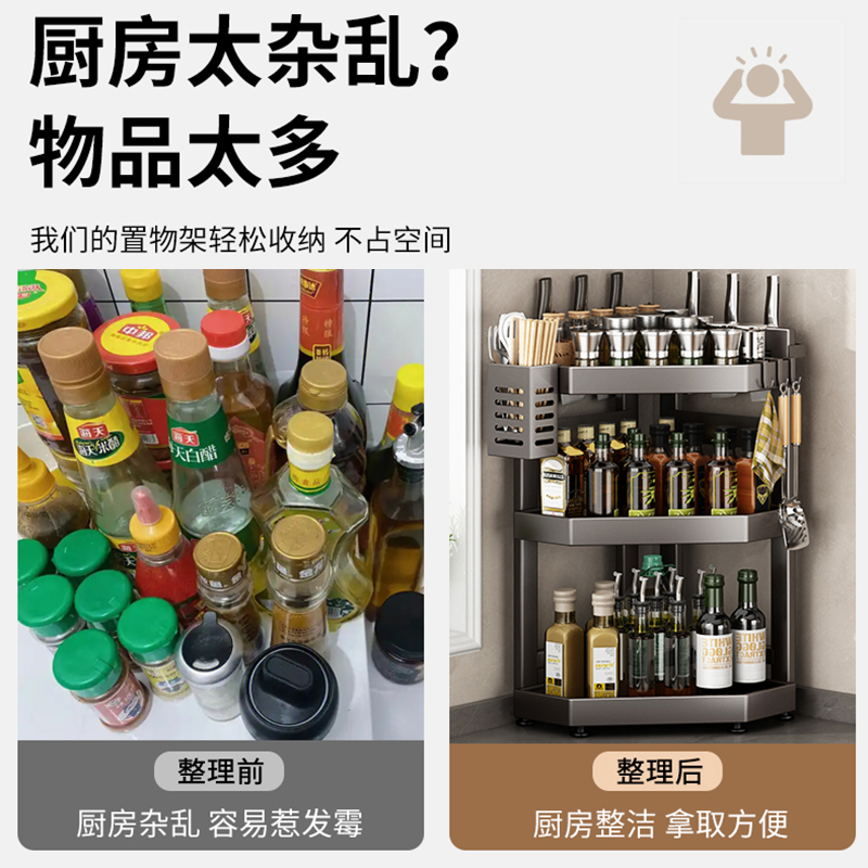 厨房调味品置物架转角三角多功能调料收纳架子酱醋瓶罐多层储物架