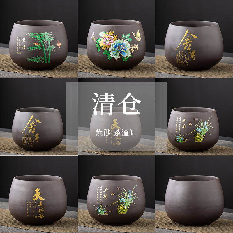 紫砂大号茶渣缸家用桌面水盂建水茶水缸废水桶功夫茶配茶洗杯零配