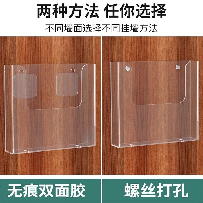 A4亚克力挂墙式书报架展示架A5壁挂资料架目录架报刊杂志架彩页架旅行社宣传单架资料盒办公透明储物盒置物架