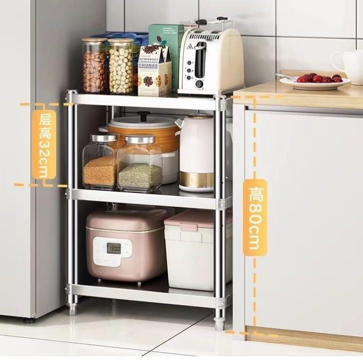 置物架3层不锈钢落地多层家用微波炉烤箱厨房储物货架多功能架子