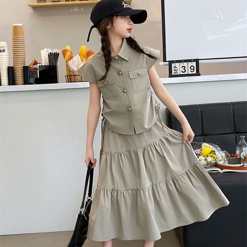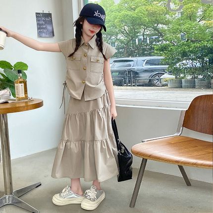 女童套装夏季新款2024衬衫半身裙两件套宽松中大童装洋气女孩套裙