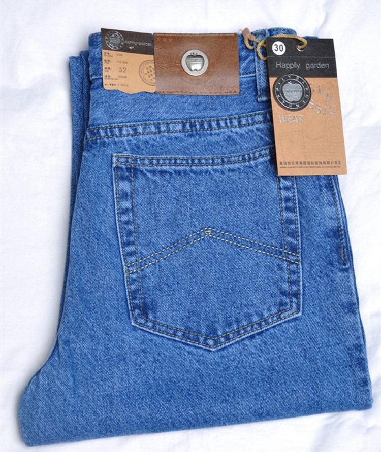 苹果牛仔裤男秋冬厚款中年男裤直筒宽松纯棉高腰苹果牌休闲长裤子