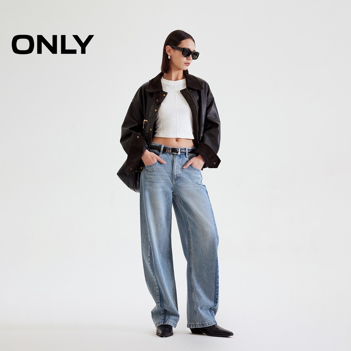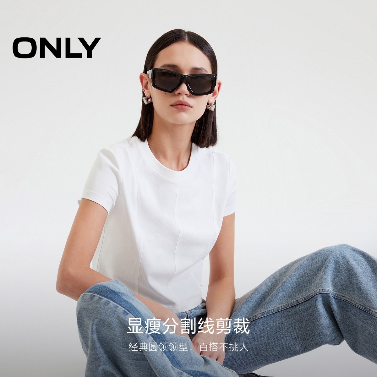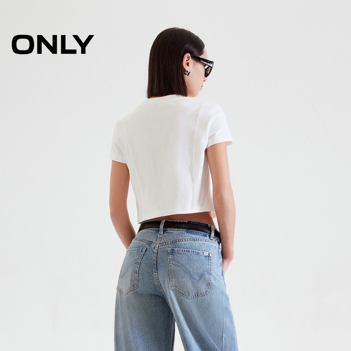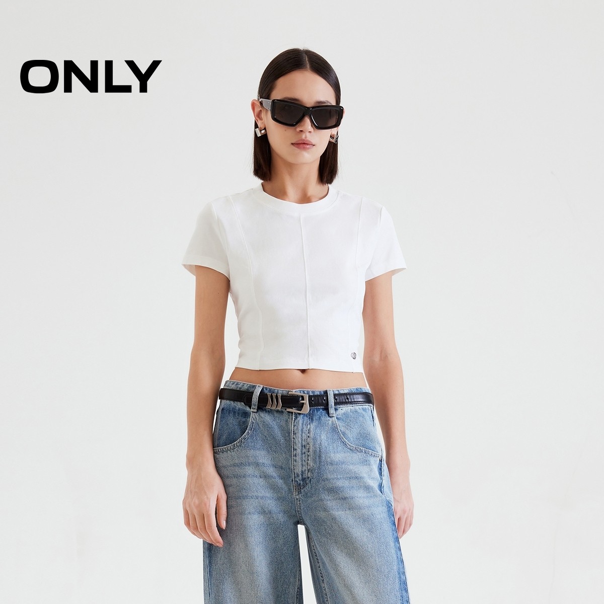 ONLY纯棉短款圆领正肩T恤