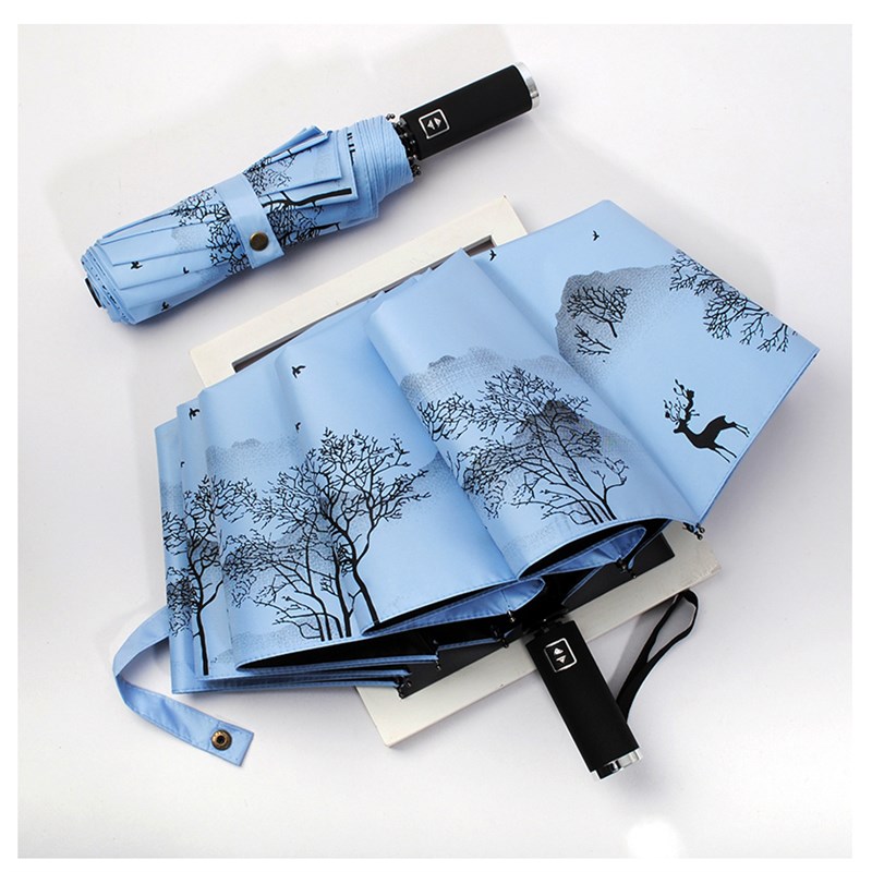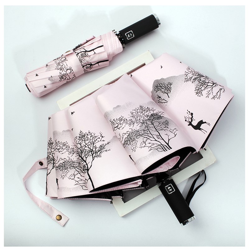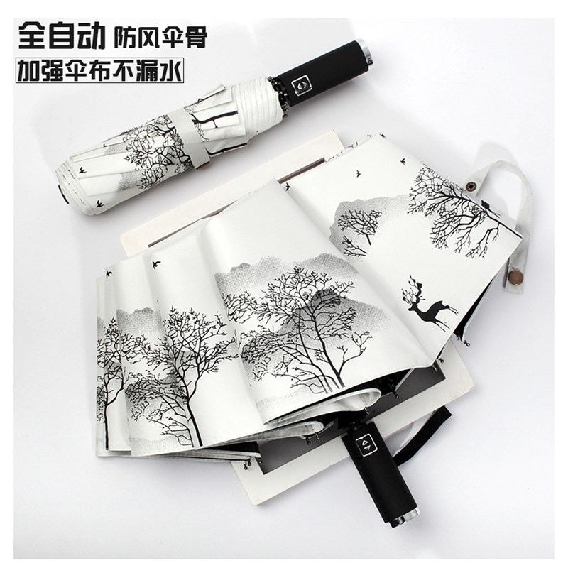 晴雨两用伞全自动男女折叠大号国潮古风太阳伞遮阳伞仙女系油纸画