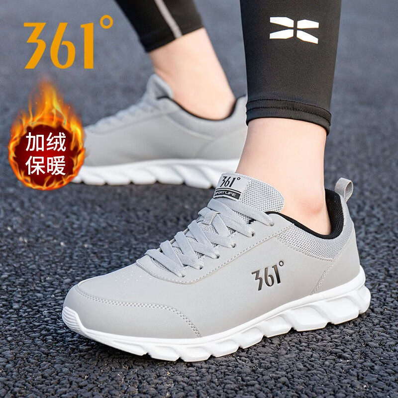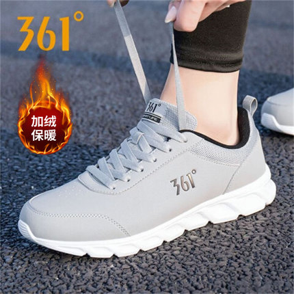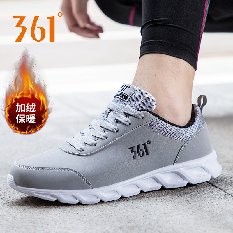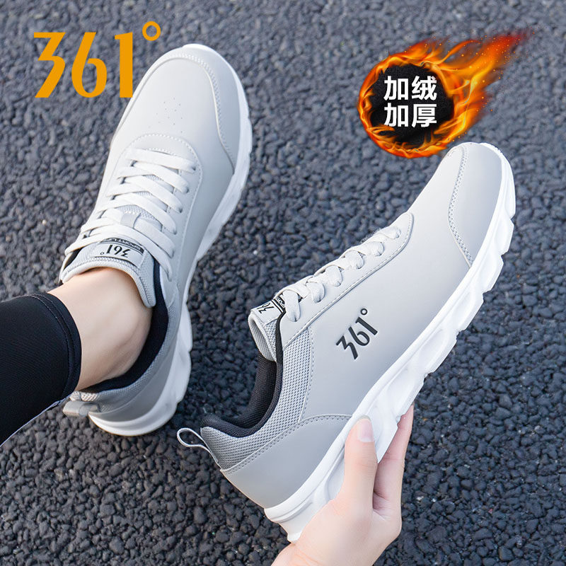 361运动鞋男鞋冬季新款皮面加绒鞋子361度官方正品防水休闲跑步鞋