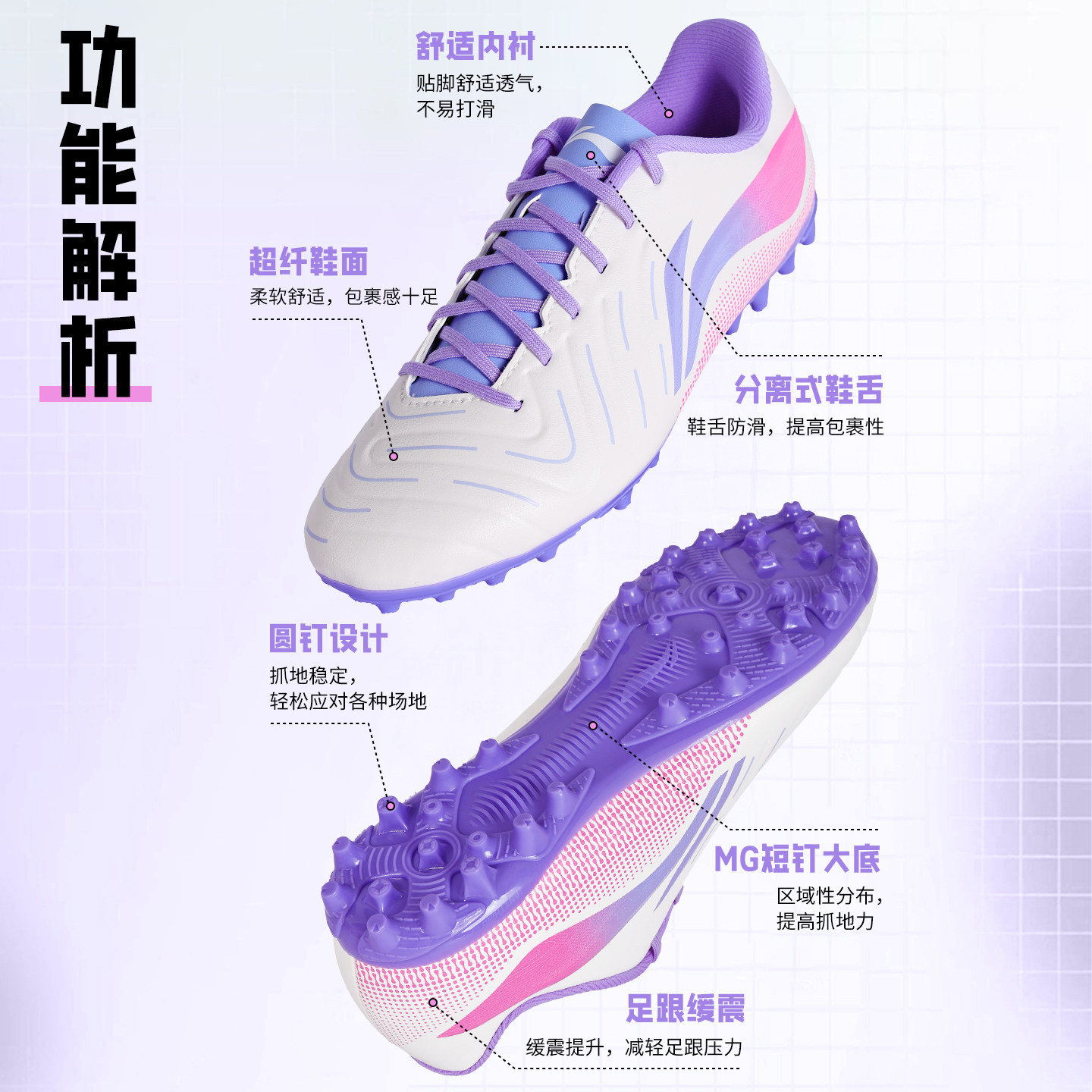 李宁儿童足球鞋男童女孩MG短钉TF碎钉青少年小学生训练比赛专用鞋