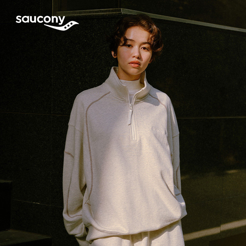 Saucony索康尼官方运动休闲时尚百搭宽松针织半开半拉链卫衣