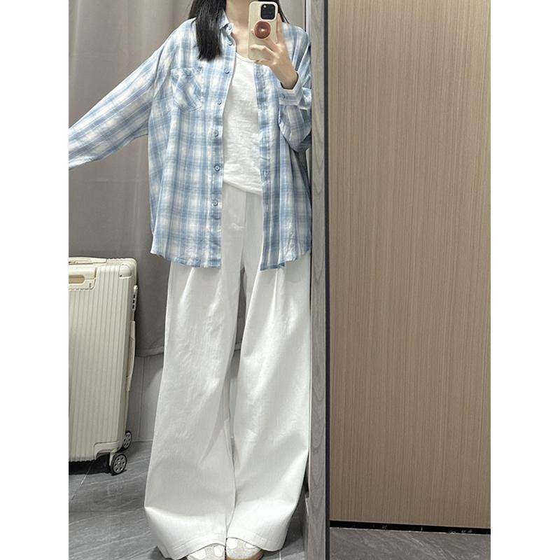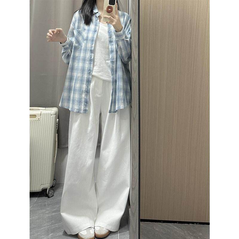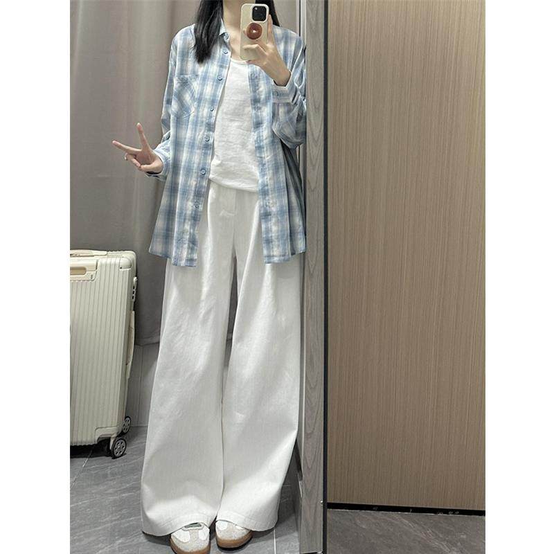 港风女装白色直筒牛仔裤女小个子褶皱高腰显瘦宽松垂感阔腿休闲裤