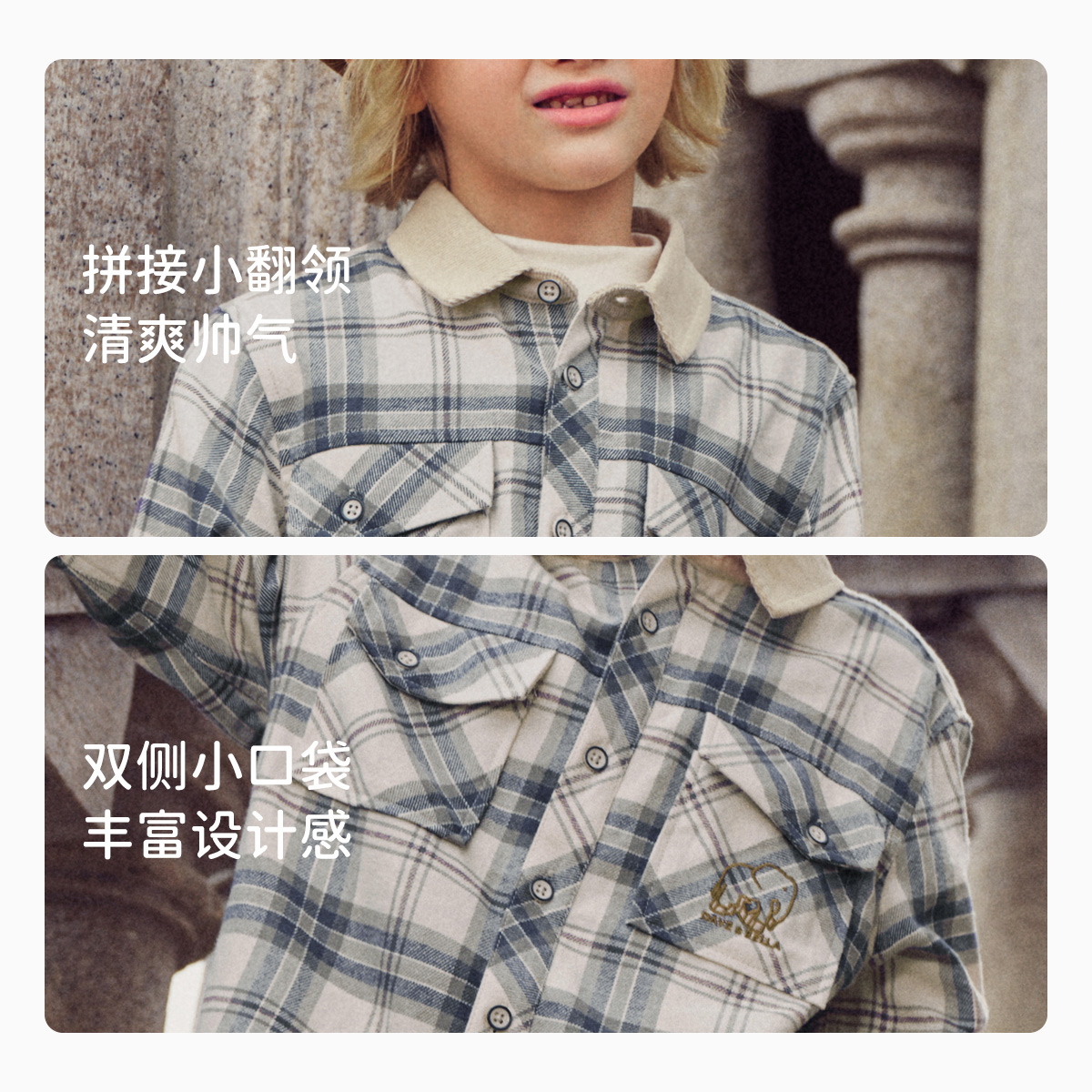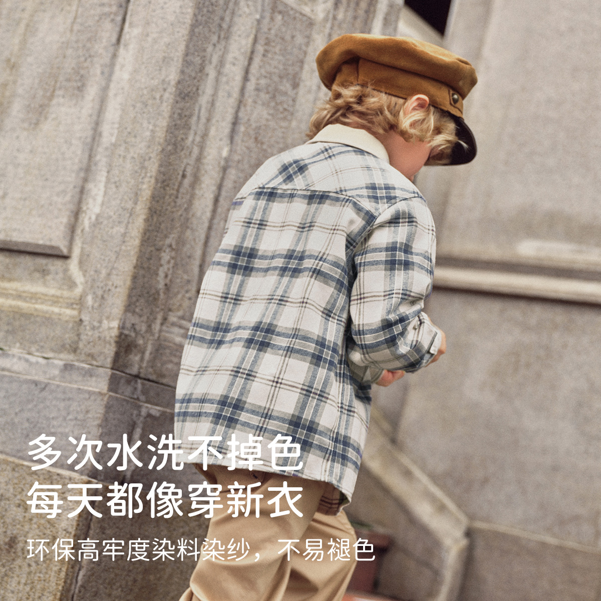 戴维贝拉男童格子衬衫2025新款秋装儿童纯棉衬衣中大童洋气上衣