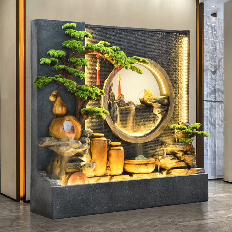 水幕墙流水屏风摆件酒店大堂公司隔断假山鱼池庭R院户外喷泉造景