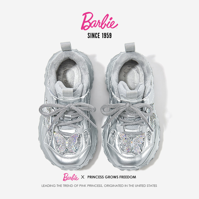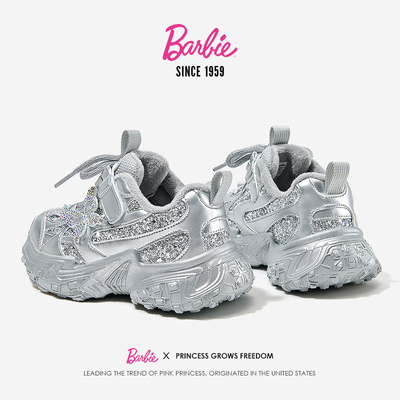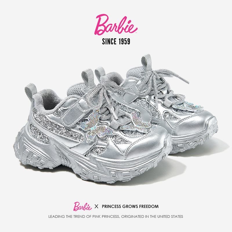 芭比童鞋女童老爹鞋2025新款秋冬软底棉鞋加绒休闲鞋子儿童运动鞋