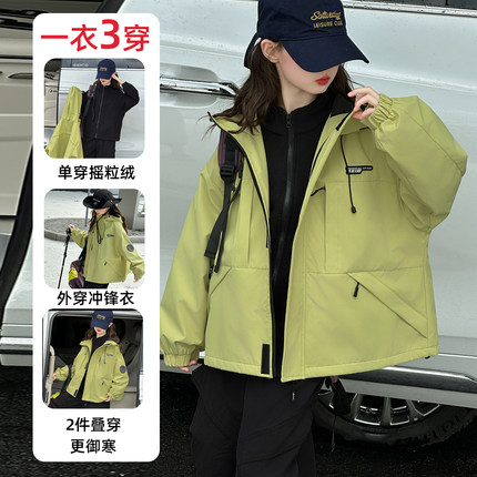 女童冲锋衣三合一可拆卸2025新款儿童洋气秋冬装女大童户外防风衣