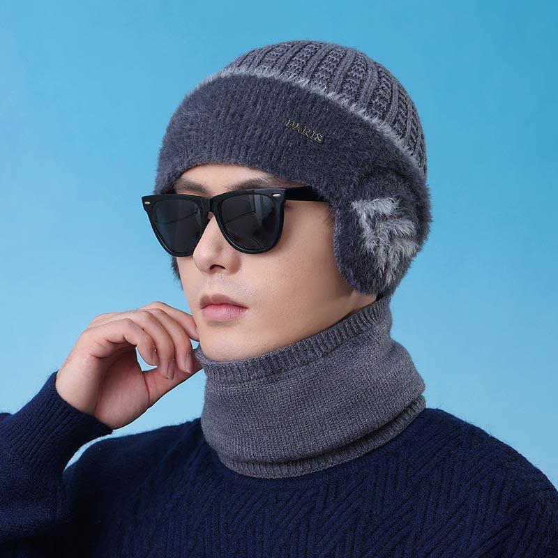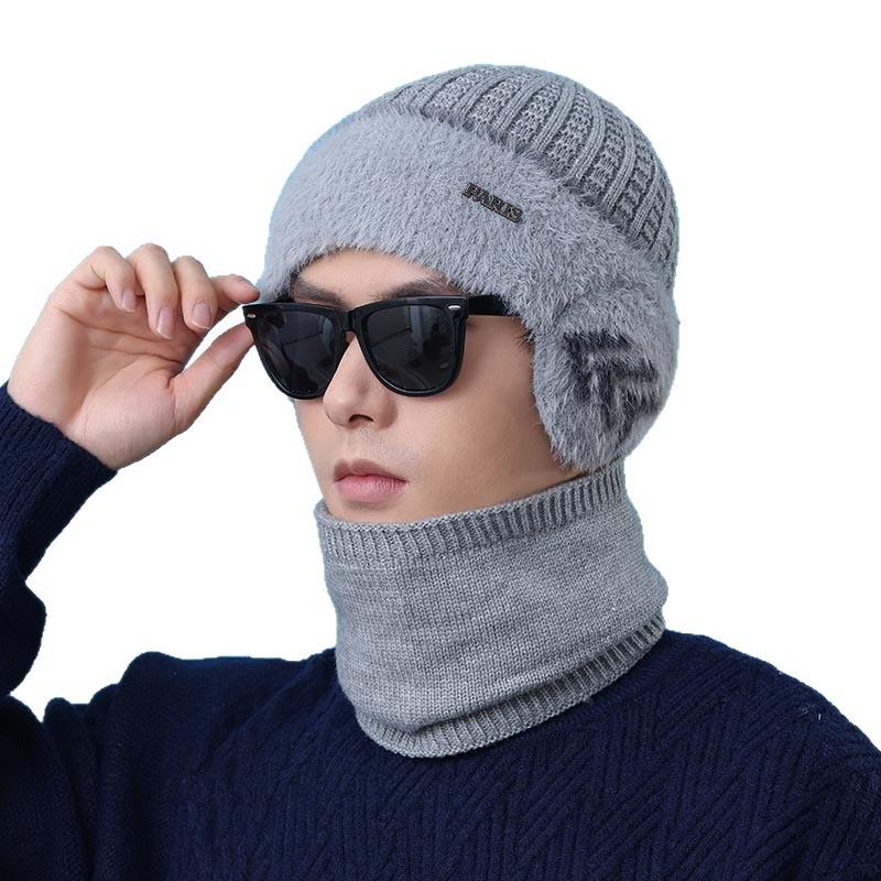 帽子男加绒加厚秋冬季保暖围脖套装户外骑车护耳帽男士针织毛线帽