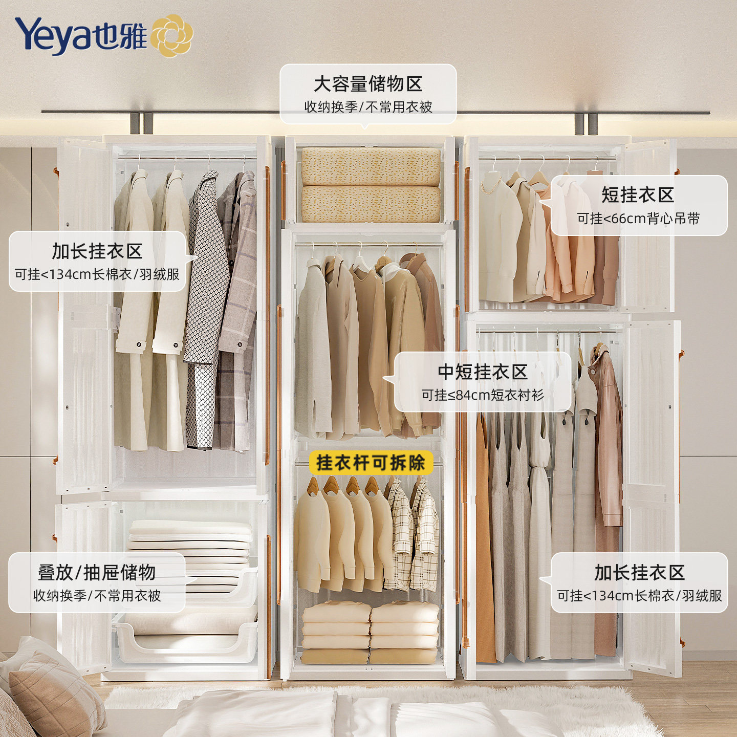 也雅简易衣柜家用卧室衣服收纳柜挂衣储物柜衣橱出租房多层置物柜