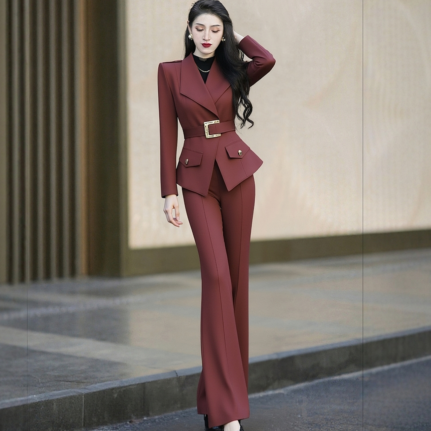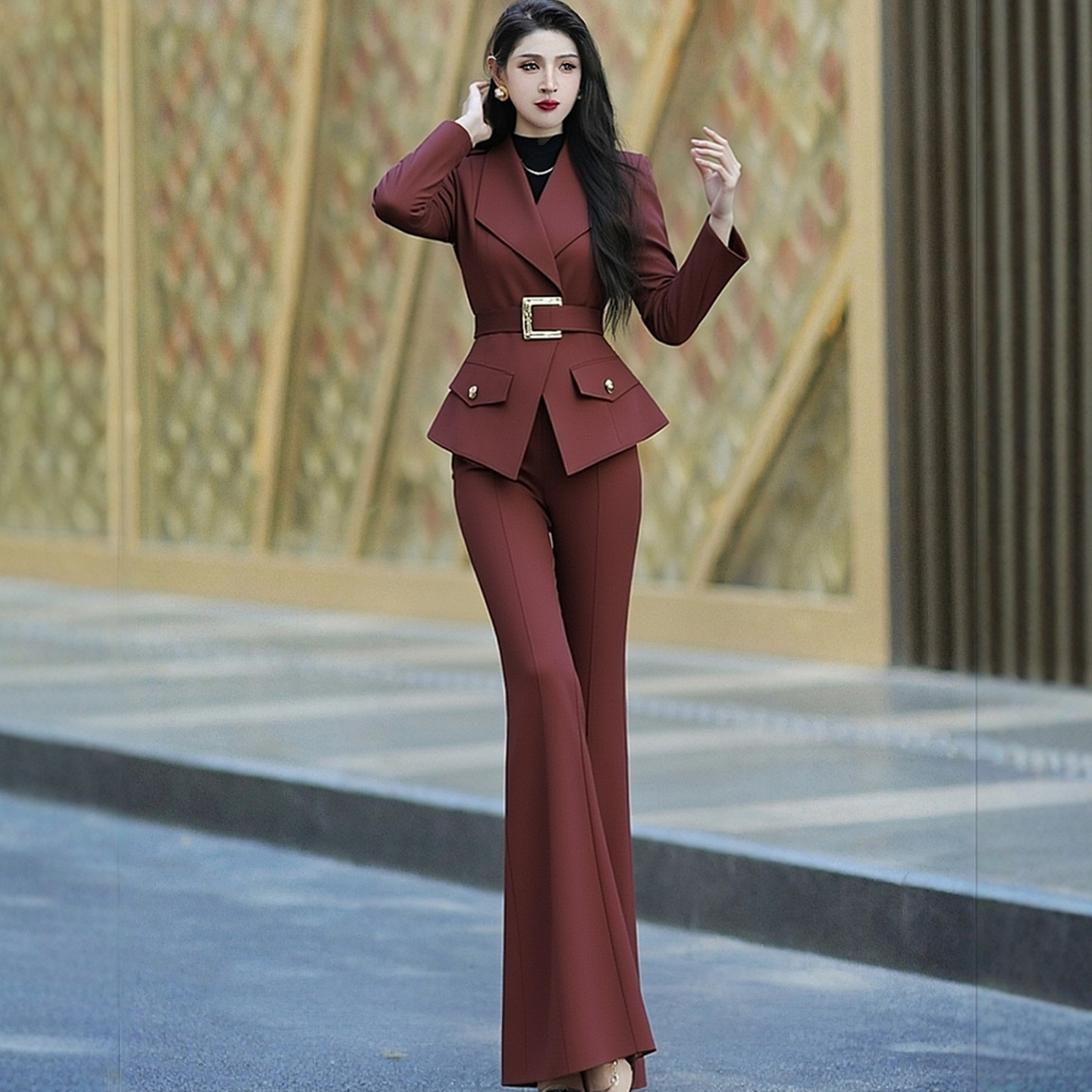 小众摩登干练气质时尚毛呢套装女秋冬新款收腰OL职业小西装喇叭裤