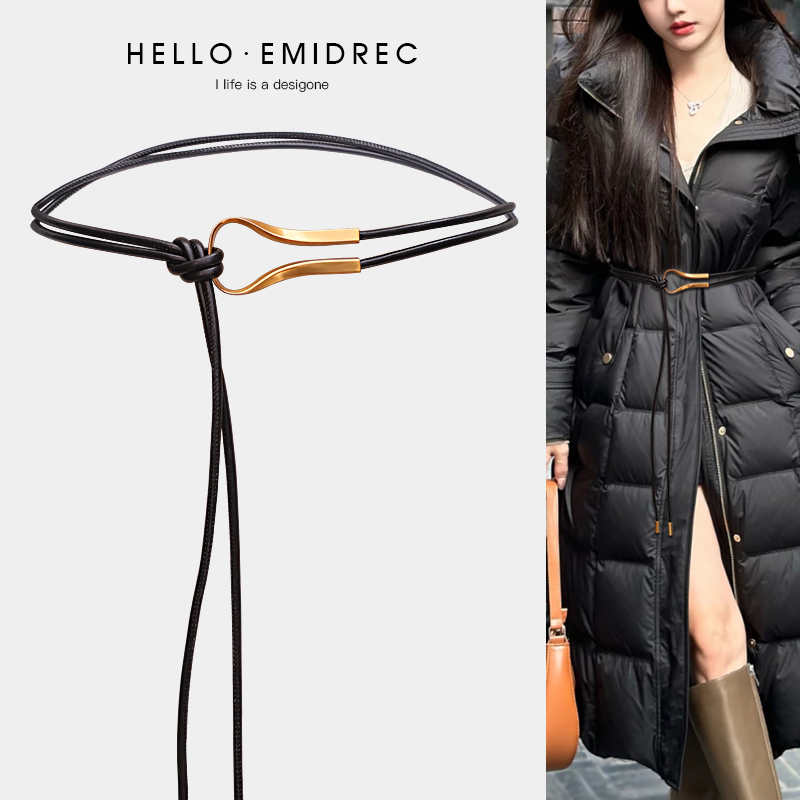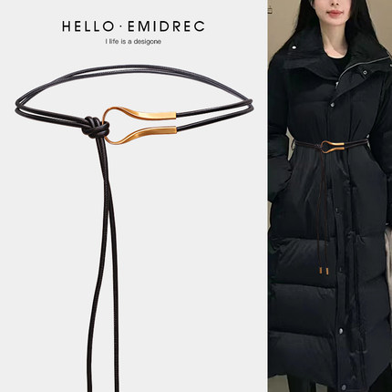 腰带女细装饰配裙子大衣毛衣羽绒服黑色2025新款秋冬皮绳腰绳百搭