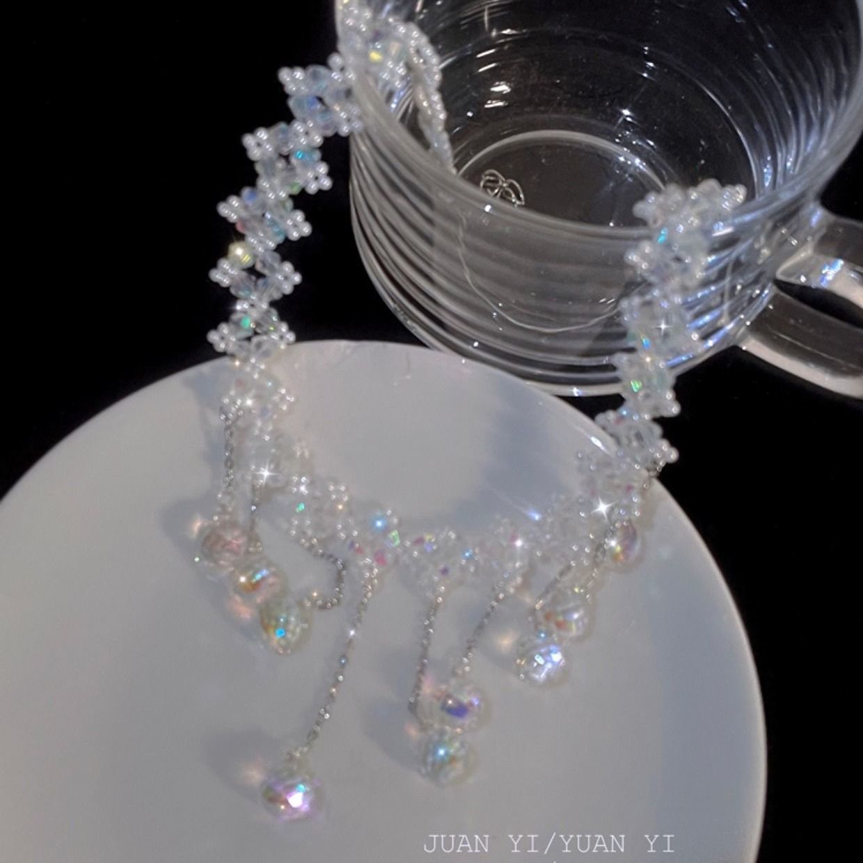 岛歌少女~超闪仙气珍珠水晶流苏项链女高级感气质小众锁骨链颈链