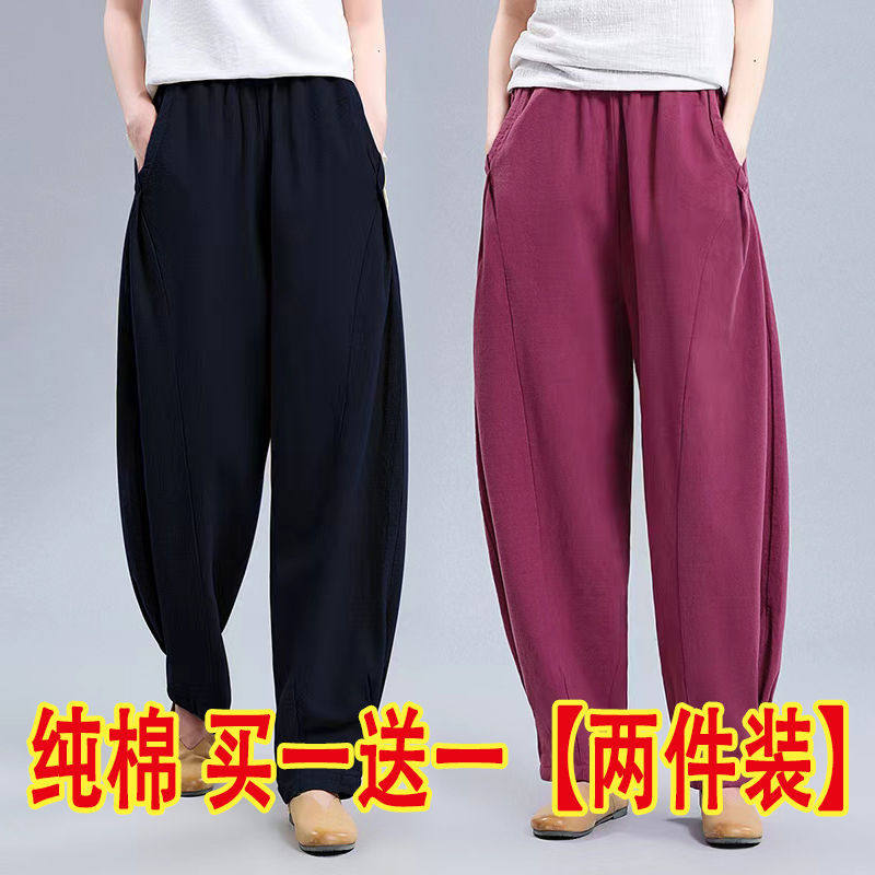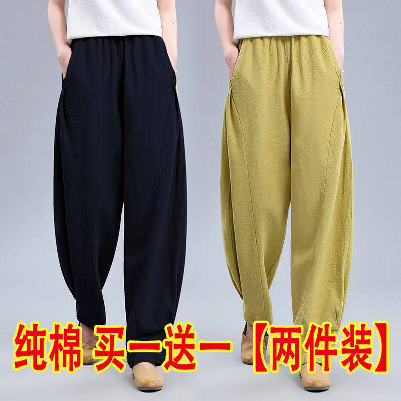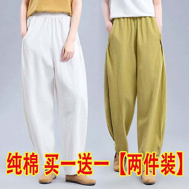 单/两件 纯色灯笼裤女夏季宽松阔腿裤休闲萝卜裤老爹裤高腰哈伦裤