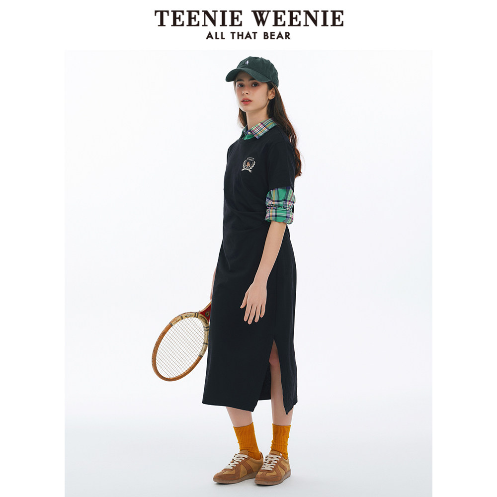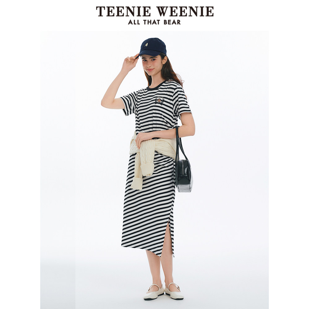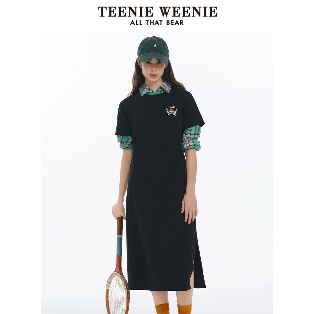 Teenie Weenie小熊奥莱女装连衣裙2025夏新款慵懒风收腰开叉长裙
