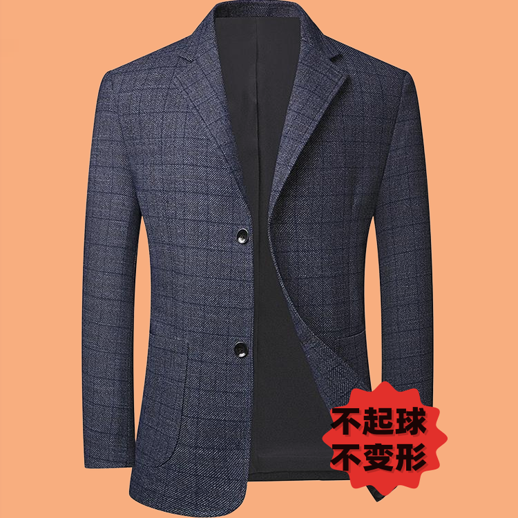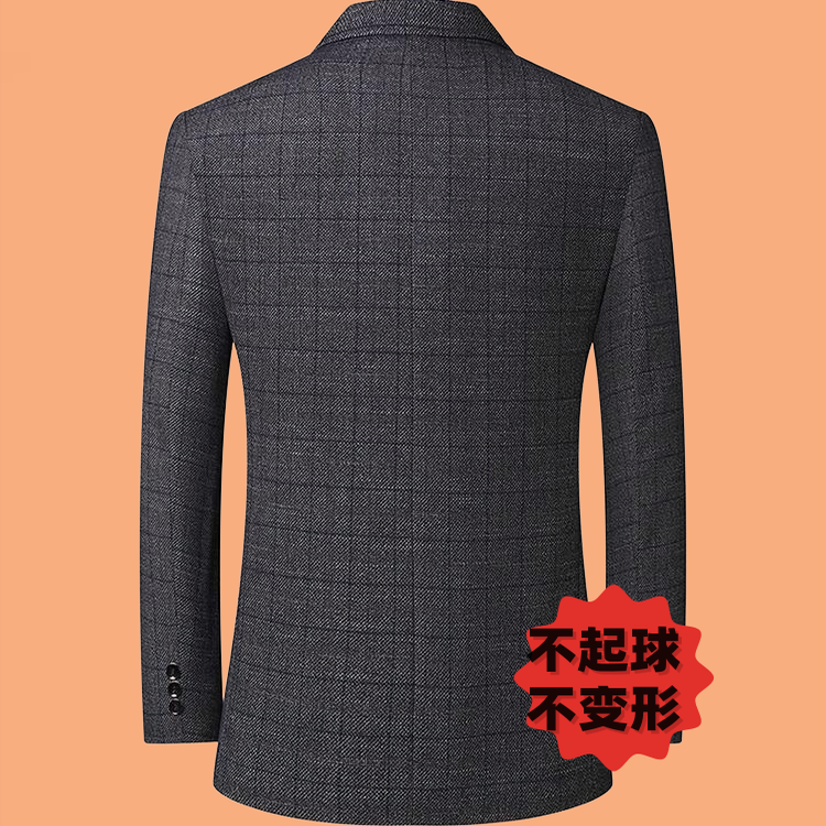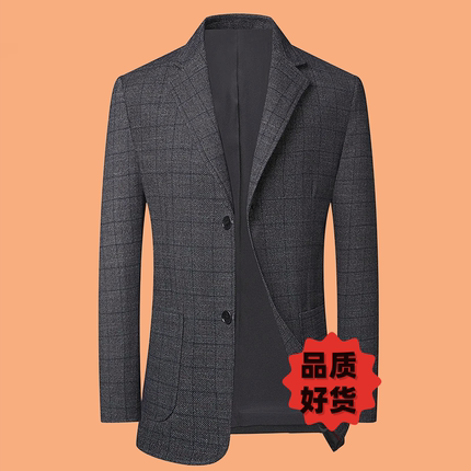 西服男士外套春秋季2025新款中老年爸爸格子宽松遮肚免烫秋装特价