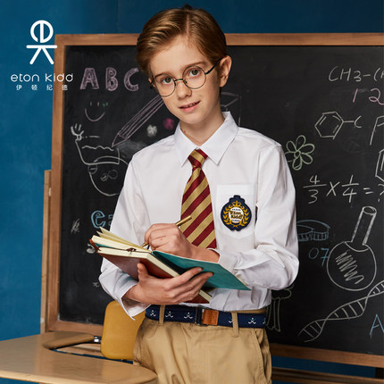 伊顿纪德 儿童白色衬衣学院纯色春秋学院长袖男衬衫10C150