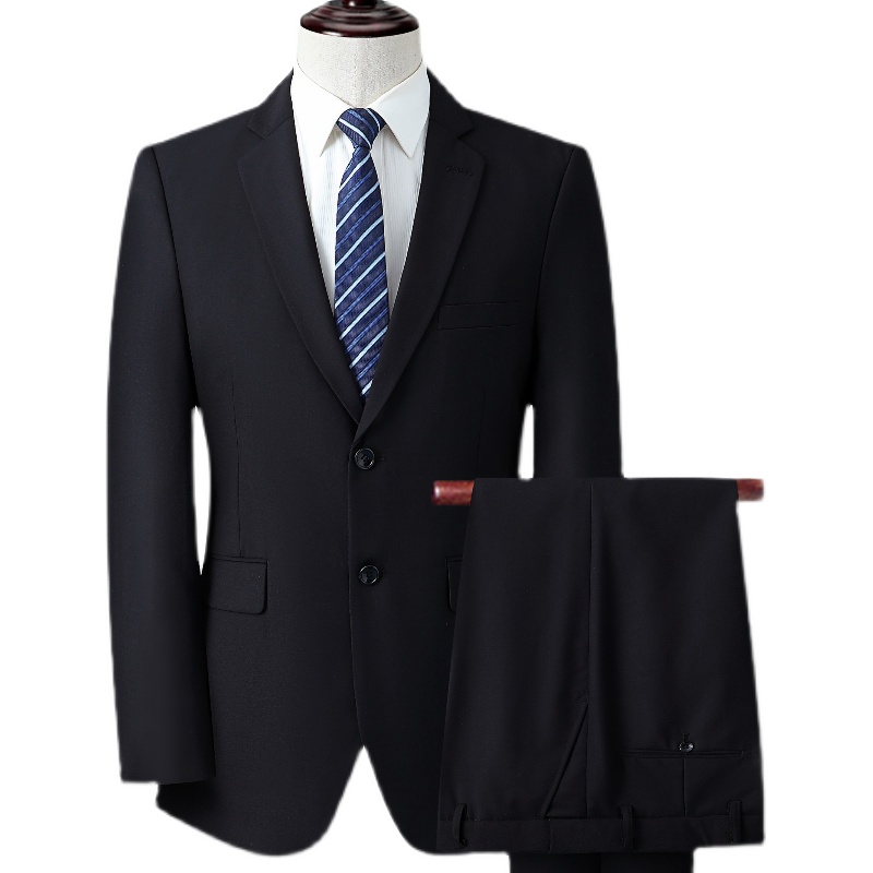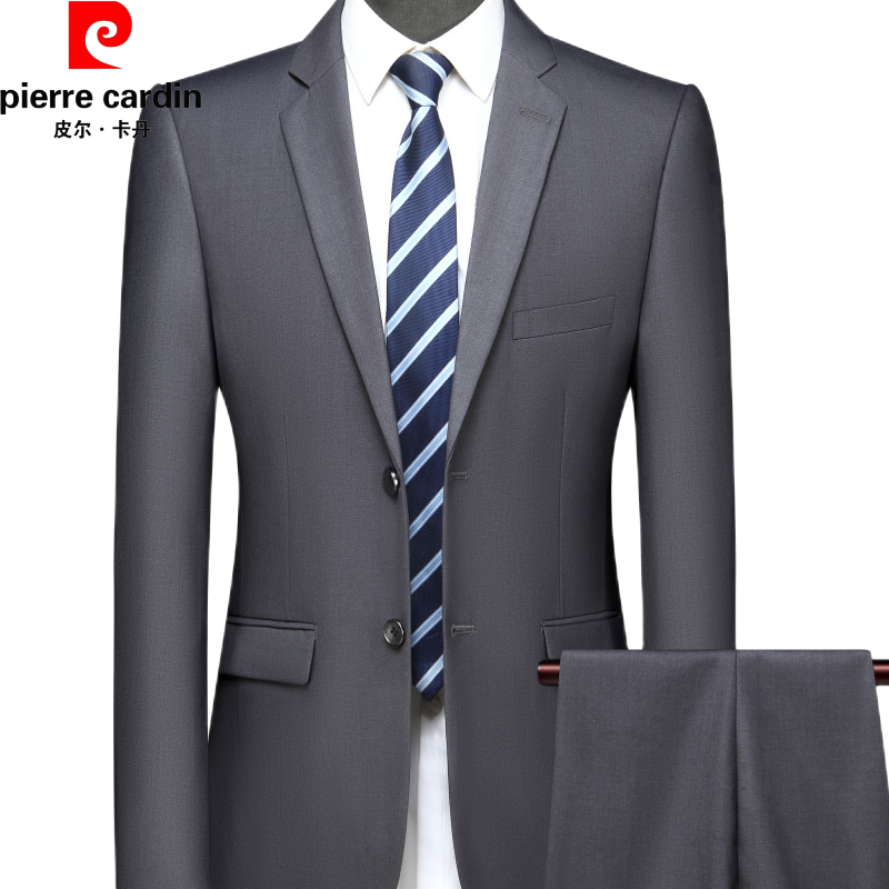 皮尔卡丹西服套装男中年纯色免烫职业正装西装男高档结婚礼服大码