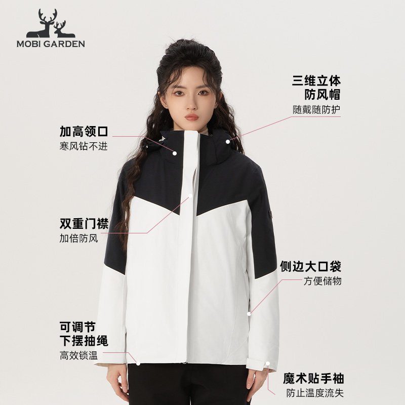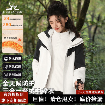 牧高笛户外三合一可拆卸套绒冲锋衣女防风衣防水外套秋ZW24318002
